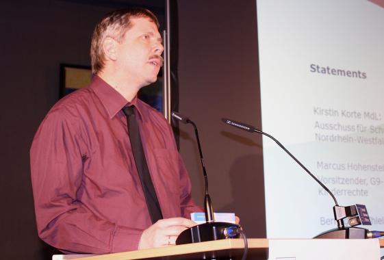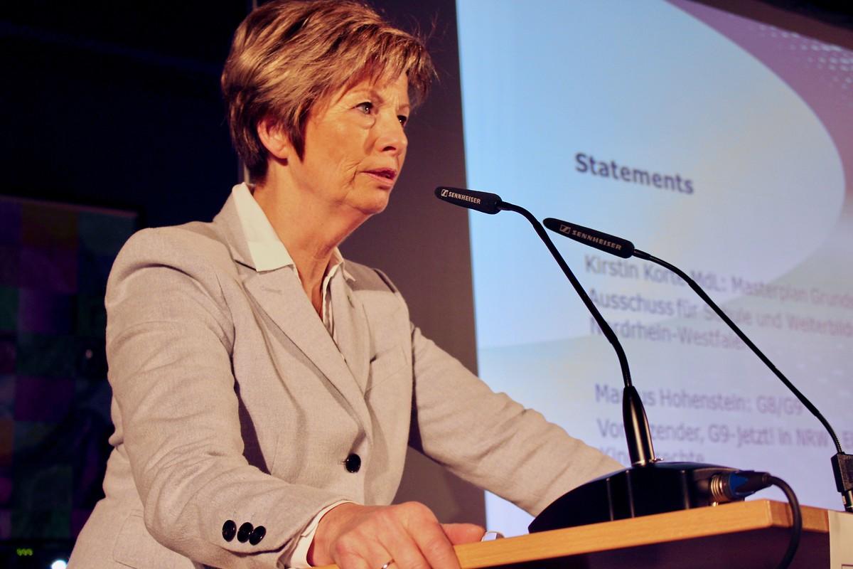 Dem widersprach die IT-Pädagogin Bernadette Thielen. In ihrem Statement betonte sie sowohl die Notwendigkeit einer angemessenen Ausstattung der Schulen mit digitalen Medien als auch die fachorientierte Kompetenzstärkung der Lehrer im Umgang mit ihnen. Die Bildungspolitikern Kirsten Korte forderte in einem 8-Punkte-Plan administrative Entlastungen der Grundschullehrer und eine Revision der aktuellen Inklusionspolitik, die zu Lasten der schwachen Schüler gehe. Marcus Hohenstein vom Volksbegehren G9 –jetzt! wies auf die starke psychische Belastung hin, die Schüler durch überfüllte Lehrpläne erführen. Bildungsprozesse benötigten Zeit und Muße, wenn sie wirksam sein sollten.