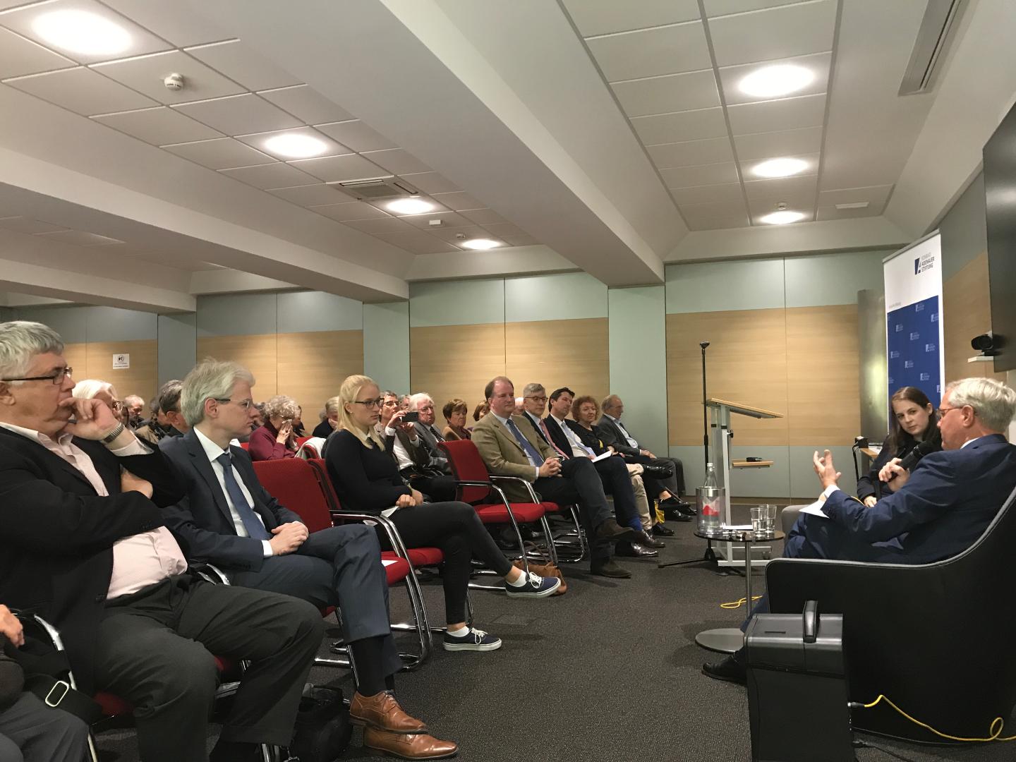 In der anschließenden Diskussion konzentrierten sich der Politiker und die Historikerin auf die augenblickliche Brexitsituation, auf die Krise des britischen politischen Systems und die Auswege aus dem Dilemma. Und – ehrlich gesagt – beide wussten schon vorher und wir haben es dann bald gemerkt, dass es hier so viele Variablen und Unbekannte gibt, dass niemand, auch nicht der innerste Kreis, in der Lage wäre, verlässliche Prognosen abzugeben. Es scheint Bewegung in den Gesprächsprozess gekommen zu sein, das Herannahen des 31. Oktober scheint eine klärende Wirkung zu besitzen, doch beide hielten auch eine weitere Verschiebung oder ein gänzliches Abblasen der Aktion für möglich.