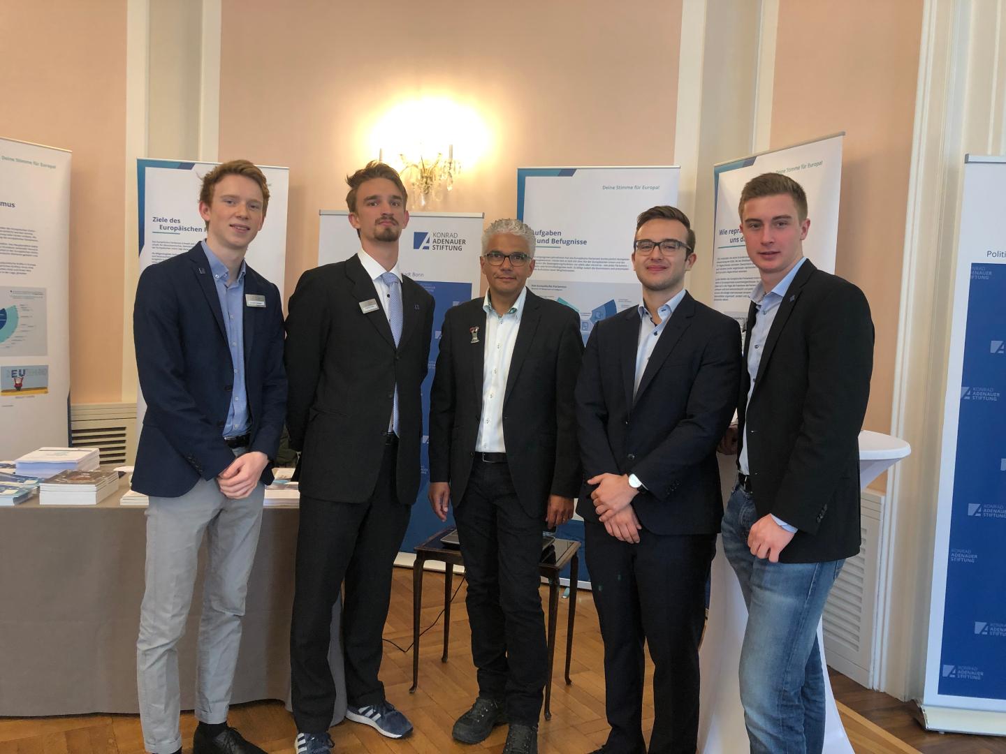 Ein junges Team aus ehemaligen und aktuellen FSJP’lern des Büros Bonn der Konrad-Adenauer-Stiftung warb am Europatag der Stadt Bonn am 4. Mai im Alten Rathaus mit Publikationen, einem Europa-Quiz, der Ausstellung „Deine Stimme für Europa“ und einer Karteanfrage zu den Erwartungen der Bürgerinnen und Bürger für die Beteiligung an der bevorstehenden Europawahl. Der Bonner Oberbürgermeister Ashok Sridharan und der Europaabgeordnete Axel Voss trafen neben hunderten vorbei flanierender Bonner und Bonnerinnen am Stand des Büros Bonn auf muntere und engagierte Europäer.