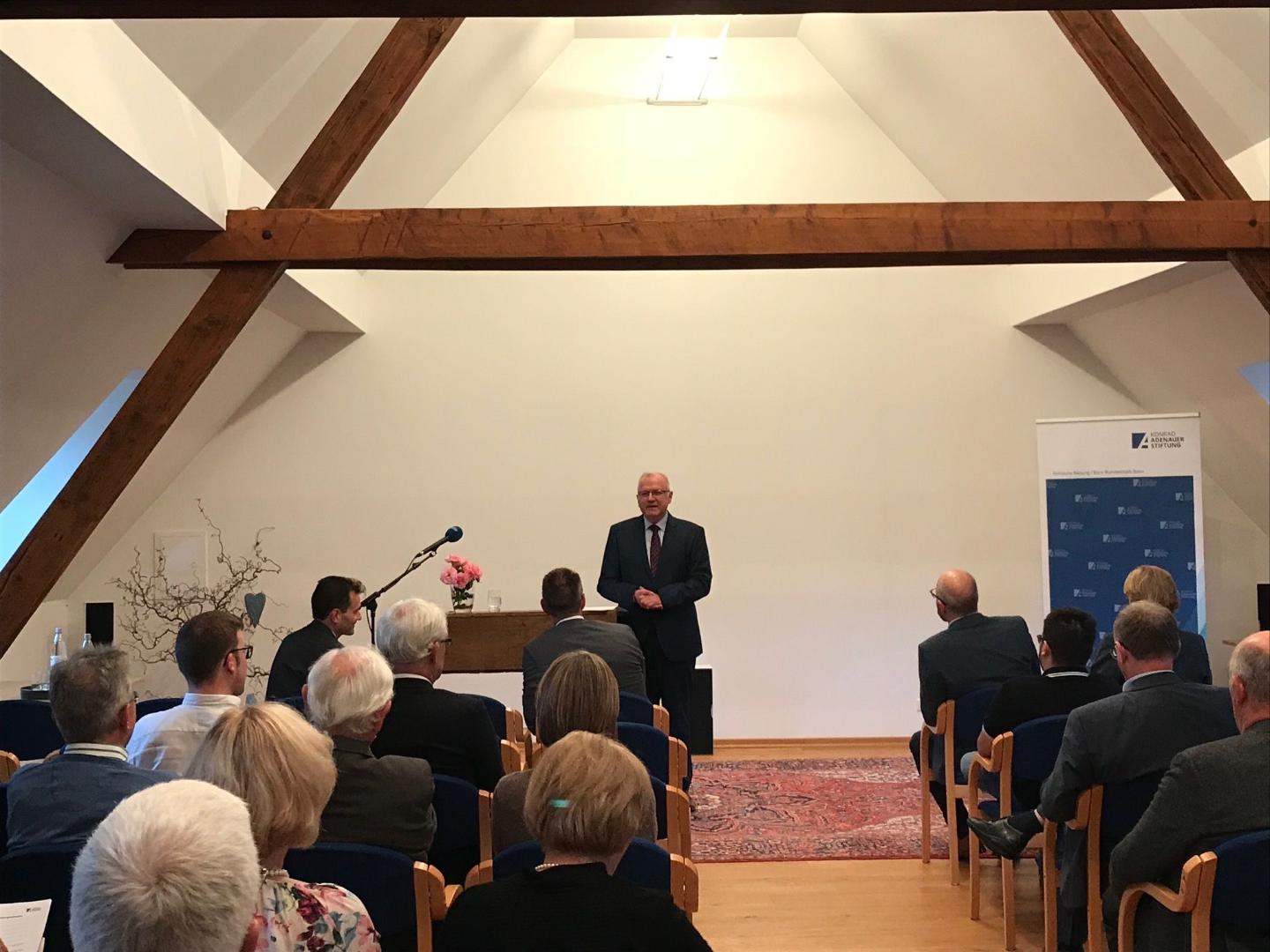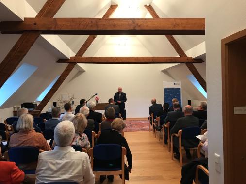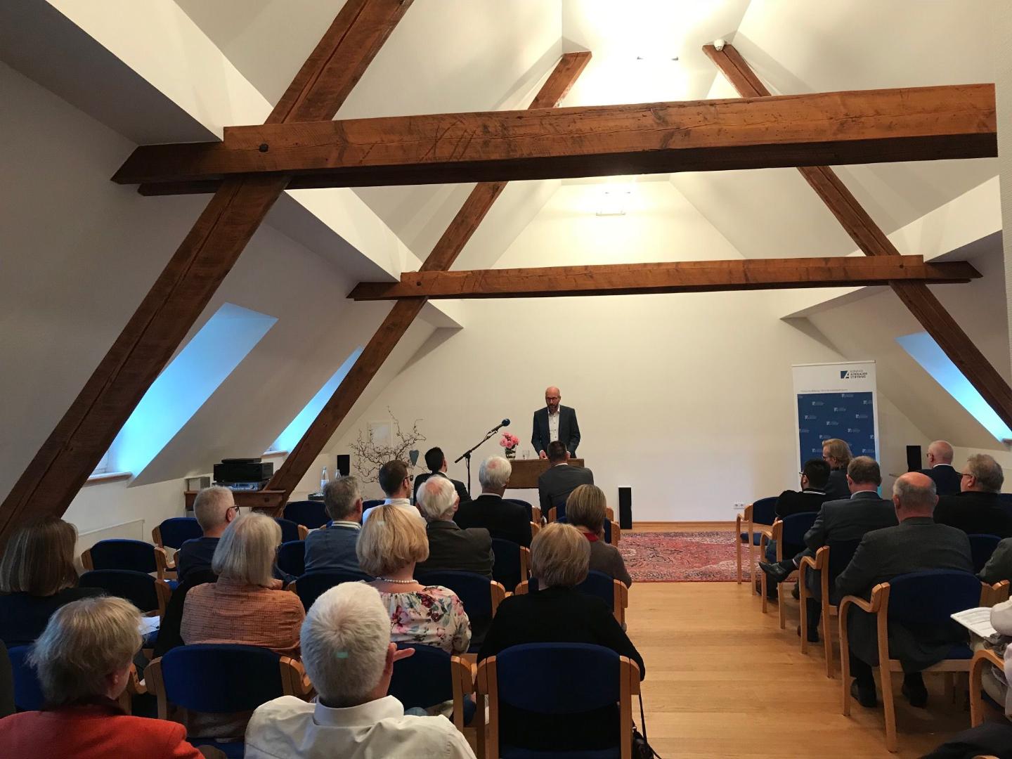 Anschließend erläuterte Prof. Dr. Volker Kronenberg in seinem Vortrag die Begriffe Heimat und Patriotismus in Zeiten von Europäisierung und Globalisierung. Der Dekan der Philosophischen Universität der Rheinischen Friedrichs-Wilhelms-Universität Bonn unterstrich, daß Heimat „ein sehr stark individualisierter Begriff“ sei, der von Personen derselben Region (Stadt, Bezirk…) unterschiedlich wahrgenommen werden könne und – natürlich – von Emotionen begleitet sei. Heimat sei nicht nur etwas Statisches, sondern auch wandelbar – und müsse „aus diesem Grund stets neu ‚gebildet‘“ werden.