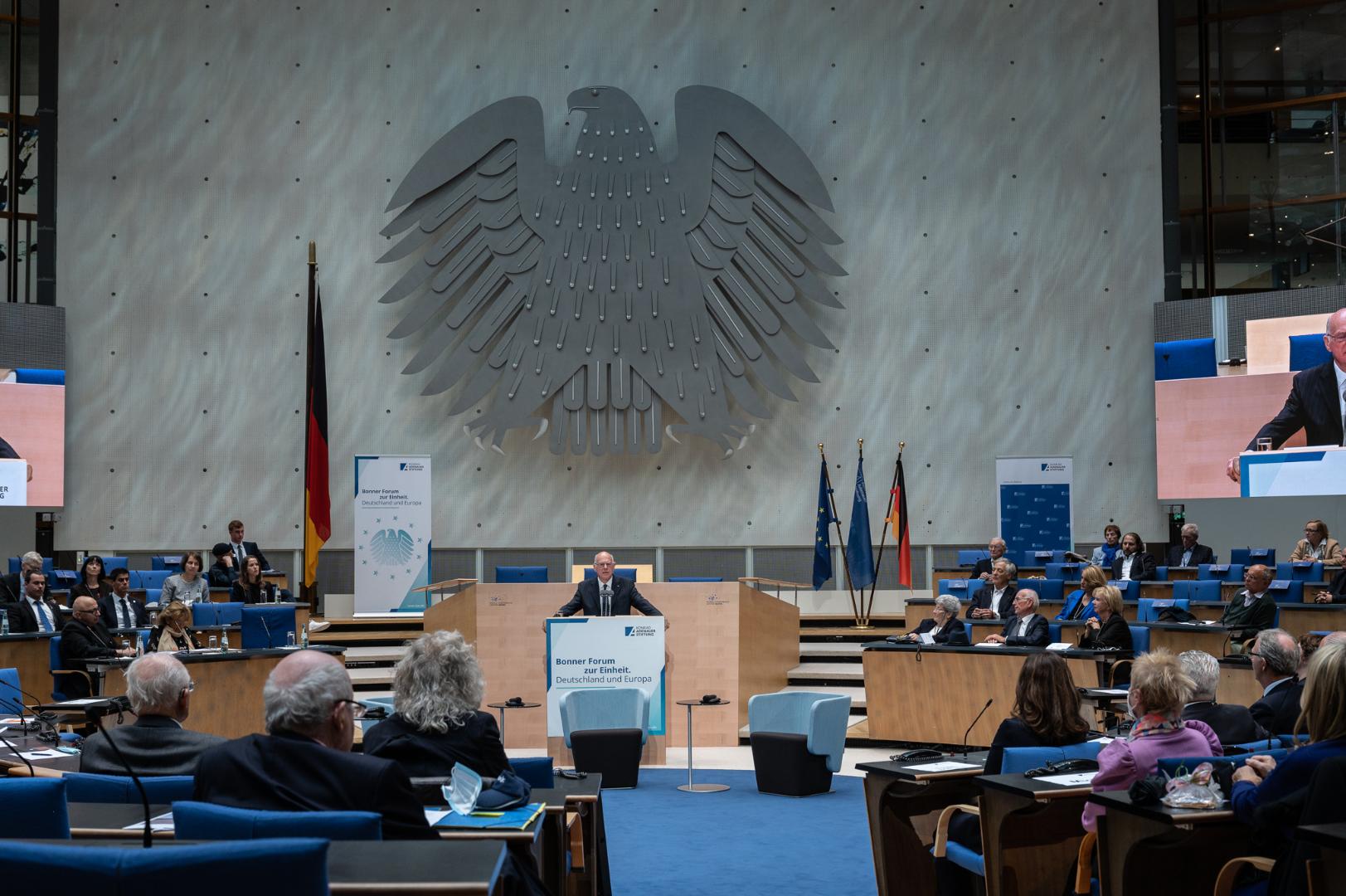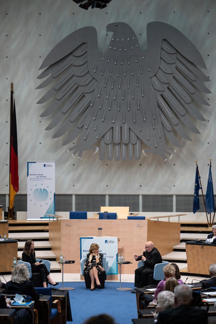 An dieser Stelle - so berichtete Prof. Dr. Norbert Lammert, Bundestagspräsident a.D. und Vorsitzender der Konrad-Adenauer-Stiftung, in seiner Einführung zu Beginn des diesjährigen „Bonner Forum zur Einheit“ im ehemaligen Plenarsaal des Deutschen Bundestages im WCCB - wurde kurz vor dem Umzug des Deutschen Bundestages ins Reichstagsgebäude der Bau des Holocaustmahnmals in Berlin beschlossen. Unter anderem damit trat die damals noch keine 10 Jahre vereinigte Bundesrepublik den Befürchtungen aus dem Ausland entgegen, das gemeinsam entstehende Deutschland könnte einen Rückfall in nationalistisches Denken und eine Sehnsucht nach dem „Schlussstrich“ erleben.