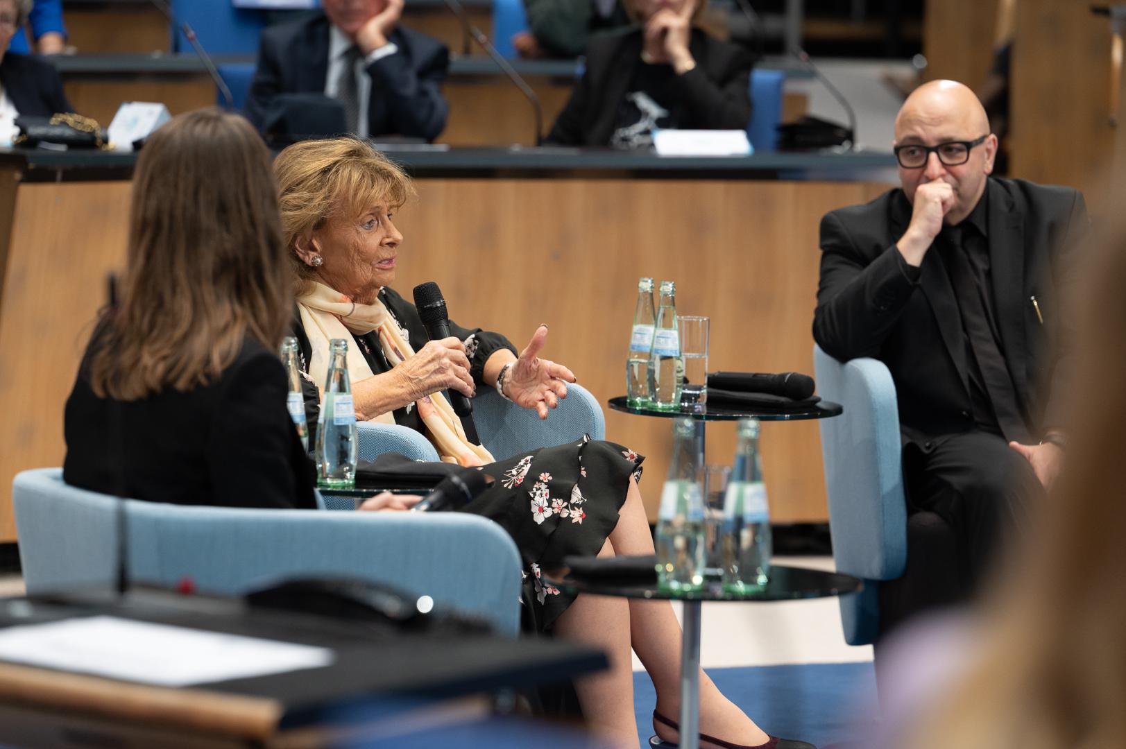 In den im Rückblick beinahe unbeschwert erscheinenden Neunzigern und zu Beginn der Nullerjahre sind beide Aspekte der Jüdischen Wiedervereinigung aus der Sicht Knoblochs zu einem guten Teil gelungen. 2005 war das Jahr mit der höchsten Mitgliederzahl. Sie ist seitdem wieder rückläufig, sicher wegen Überalterung, aber auch wegen der Abwanderung u.a. nach Israel und die USA. Was ist passiert? Und an dieser Stelle wechselte der Ton Charlotte Knoblochs, denn die Aktualität ist alles andere als ein Grund zum Feiern. Anschläge auf Synagogen, Gewalt gegen Juden in den Städten, antiisraelische Hassdemonstrationen, offener Antisemitismus von AfD-Parlamentariern – das ist für jüdische Gemeinschaften im Ausland Anlass genug, besorgt zu fragen, ob Verwandte und Freunde in Deutschland noch sicher leben, womit sie die Zweifel und die Sorgen der hier Lebenden noch verstärken. Für Charlotte Knobloch ist das sehr schmerzlich mitanzusehen, ist doch Deutschland in ihren Worten „ein besonderes jüdisches Heimatland“.