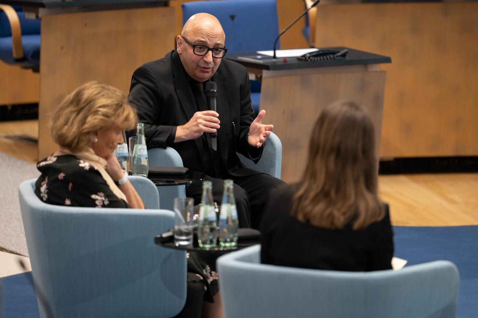 Im anschließenden Gespräch mit Prof. Dr. Armin Nassehi, Soziologe der LMU München und Fellow der Adenauer-Stiftung, drehte sich fast alles um den Begriff der „Normalität“. Charlotte Knobloch forderte, dass endlich Angehörige des Judentums in Deutschland nicht als „Jude“ oder „Jüdin“ angesprochen und empfunden werden, sondern als „Mensch“. Das sei ein hehres aufklärerisches Ziel, wendete Nassehi ein, aber es sei (noch) nicht realistisch: Solange man noch „Normalität“ einfordern müsse, sei diese nicht gegeben. Noch immer müssen Politik und Öffentlichkeit „Zeichen“ dafür setzen, dass Menschen jüdischen Glaubens und Kultur zu dieser Gesellschaft „ganz normal“ gehören – aber in eben dieser Zeichensetzung drücken sie gleichzeitig aus, dass noch nichts „normal“ ist. Offensichtlich können nur wenige, ohne etwas im „Hinterkopf“ zu haben – sei es positiv oder negativ – in Kommunikation miteinander treten. Sein Ausweg ist „Alltagsbegegnungen schaffen“. Erst in ihnen kann sich Unbefangenheit einstellen.