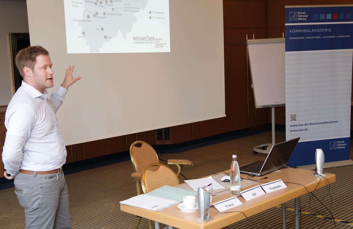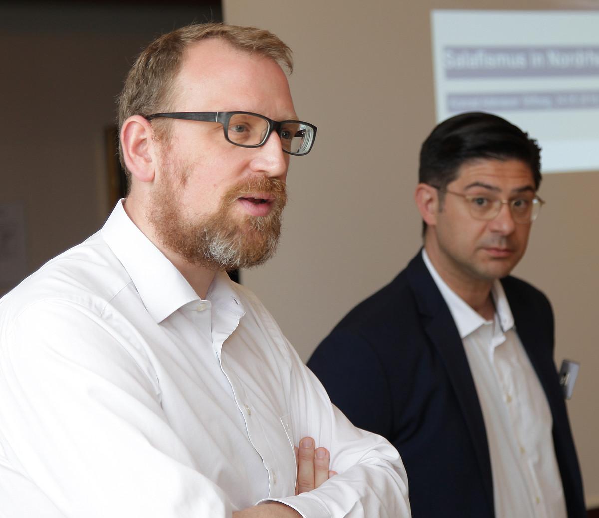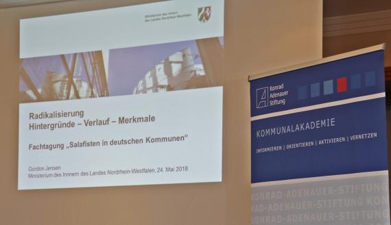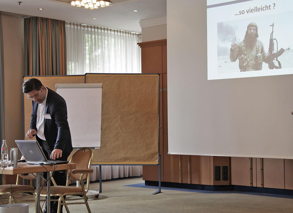Nach der Begrüßung durch Dr. Arndt und Frau Wäsche führte Herr Franz in die Fachtagung ein. Er erläuterte die Radikalisierung am Beispiel von Bonn-Bad Godesberg, indem er auf die Vorfälle vom Mai 2010 und die Folgen einging. Bad Godesberg sei damals Anziehungspunkt für die bundesweite Salafistenszene gewesen.Anschließend erläuterte Herr Yel die Gruppierungen von islam. Terroristen im Ausland und die Auswirkungen auf Deutschland. Er zeigte die Sicherheitsarchitektur auf und ging auf die Ursprünge des Islamismus ein (Muslimbrüder, Wahabismus) sowie den daraus resultierenden Jihad. Durch die große Heterogenität sei ein Dialog schwierig, auch Ansprechpartner fehlten hierdurch. Anschl. skizzierte er den innerislamischen Gegensatz von Schiiten und Sunniten sowie die ethnische Heterogenität Islamgläubiger (1,3 Mrd. Menschen). Darauf erläuterte er polizeiliche Maßnahmen in Deutschland und die Vernetzung der Sicherheitsbehörden auch mit anderen Akteuren wie den Kommunen, dem BAMF und NRO. Zuletzt ging er auf spezielle Erscheinungsformen des Salafismus in Kommunen ein (Sven Lau, Pierre Vogel etc.). Herr Trusheim schilderte die Situation seit 2003 und den Anstieg der Aktivität seit dem Syrienkrieg bzw. dem Entstehen des sog. Islam. Staates. 2018 habe es etwa 1000 Ausreisen gegeben, aber durch das Ende der territorialen Existenz des sog. Islam. Staates stagnierten diese. 320 Personen seien zurückgekehrt, in Teilen desillusioniert. Die Zahl der Salafisten in NRW schätzt er auf etwa 3000. 27 Prozent seien gewaltorientiert. In den Kriegsgebieten würden bereits Kinder und Jugendliche zu Kämpfern erzogen. Die Rolle der Frauen, auch in Deutschland, werde aktiver. Es gebe gut organisierte Hilfsorganisationen, die Spenden sammelten und Gefangene betreuten. Die Szene in Deutschland sei fragmentiert und in Teilen ohne Orientierung, die Radikalisierung von Gefangenen in JVAs nehme zu. Gordon Jensen betonte die Bedeutung von Netzwerken in Kommunen, um der Radikalisierung zu begegnen. Es gebe eine individuelle Radikalisierung, eine über Netzwerke und über die salafistische Szene. Aus Unmut sei man empfänglich für Ideologien, und am Ende stehe dann die Radikalisierung. Radikalisierung sei auch nicht am Bildungsgrad festzumachen. Psychische Problemlagen und Identitätssuche vor allem bei Jugendlichen beförderten die Radikalisierung. Salafisten böten den Jugendlichen ein Elitedenken, die Zugehörigkeit zu einer Avantgarde, die sich durch Kleidung, Sprache, Symbole ausdrücke und Elemente der Popkultur beinhalte.