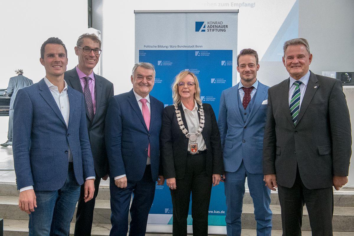 „Was ist denn da los? Soviel Polizei?“ wurde die Bürgermeisterin Sabine Preiser-Marian am Sonntag Morgen, dem 3.11., von Passanten auf dem Weg zur Matinée der Konrad-Adenauer-Stiftung in Bad Münstereifel angesprochen. Wenige Minuten später fuhr der Innenminister von Nordrhein-Westfalen, Herbert Reul, am ehemaligen erzbischöflichen Konvikt vor und eilte umgehend quer über die Straße auf „seine“ Polizisten aus Euskirchen und Bad Münstereifel zu, um sie zu begrüßen und sich für Ihren sonntäglichen Dienst zu bedanken.