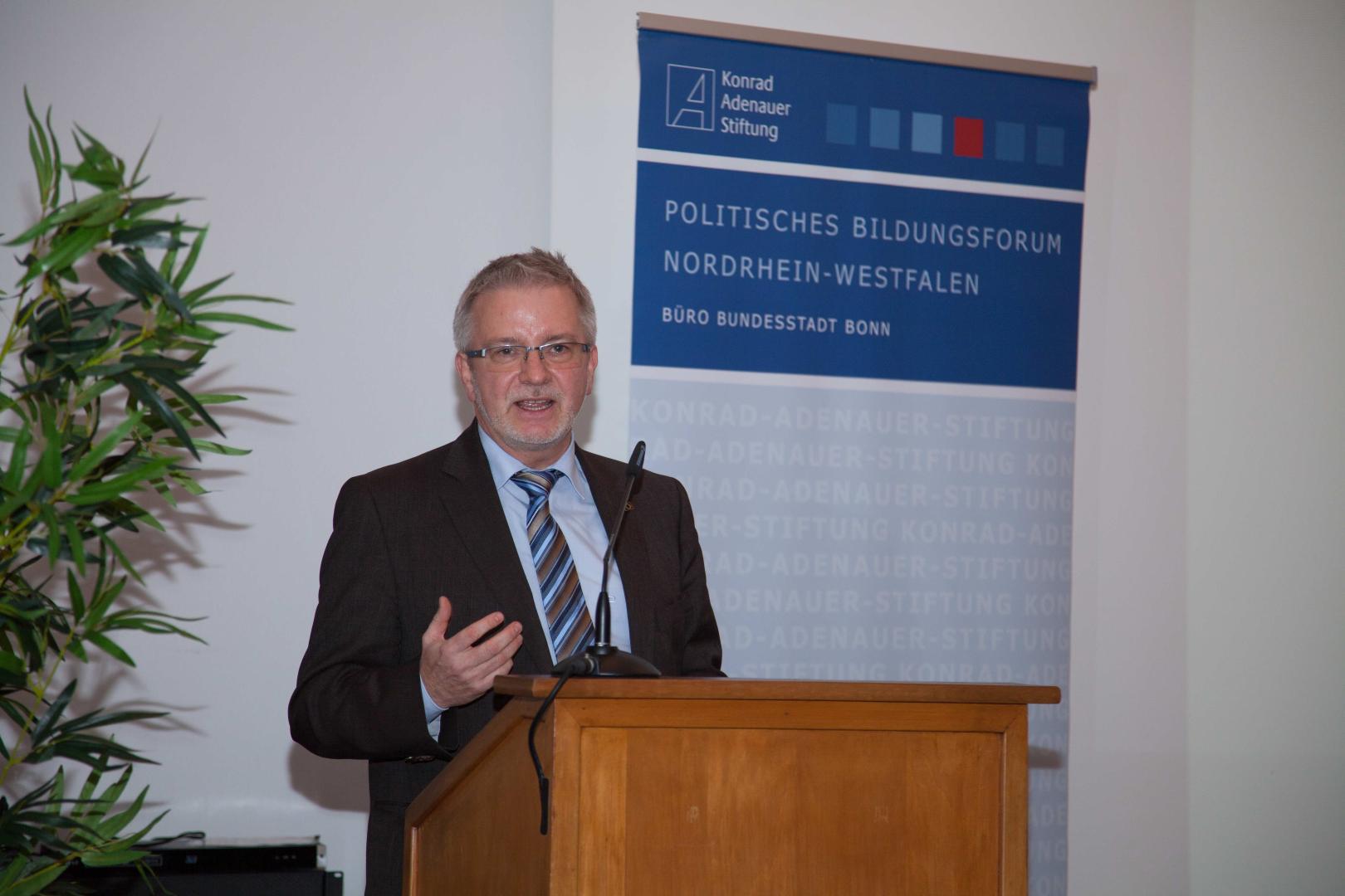 In seinem Schlusswort meinte Jochen Pöttgen, Leiter der EU-Vertretung in Bonn, dass sich im Jahre 2050 die Frage nach einer gemeinsamen europäischen Armee gar nicht mehr stellen würde, sie sei dann unbedingt notwendig. Das hochgesteckte Ziel könne jedoch nur gelingen, wenn alle Mitgliedsstaaten gemeinsam an der Verwirklichung des Projektes mitarbeiten würden.