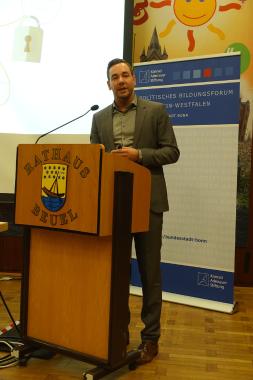 Ulrich Hamacher, Geschäftsführer des Diakonischen Werkes Bonn und Region, formulierte eine besondere Aufgabe: Wer diese Gesellschaft bewahren will, müsse lernen sie zu verändern. Wir müssen lernen, wie wir neue Strukturen des Zusammenhalts schaffen können. Hierfür identifizierte er drei Aspekte. Zu allererst müssen wir wieder Respekt vor den Menschen haben und aufhören sie abzustempeln, z.B. als Flüchtling oder Behinderter. Denn zu allererst sind wir alle Menschen. Zweitens müssen wir den Dialog suchen. Es müssen Treffpunkte für den Austausch geschaffen werden und wir müssen einander wieder zuhören. Und drittens muss jeder selbst aktiv werden.