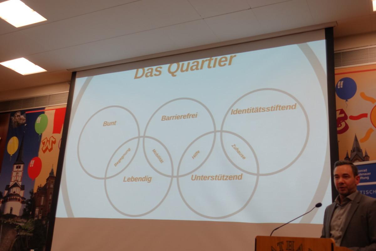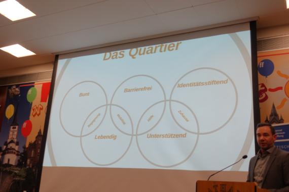 Michael Heine stellte als Leiter von „Mitten im Leden“ ein ganz konkretes Projekt vor. Hierbei geht es vor allem, aber nicht ausschließlich um die Begegnung und das Zusammenleben von Menschen mit und ohne Behinderung. Ziele sind unter anderem solidarisches Miteinander, aktive Gemeinwesensarbeit sowie Teilhabe & Inklusion. Es soll ein Quartier entstehen, das ein buntes, barrierefreies, identitätsstiftendes, lebendiges und unterstützendes Zuhause für seine Bewohnerinnen und Bewohner bietet.