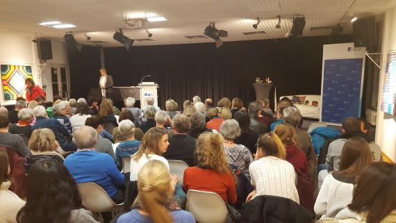 Dr. Bärbel Wardetzki, Psychologin mit Schwerpunkt auf weiblichem Narzissmus, referierte am Abend des 29. November 2018 im Deutsch-Amerikanischen-Institut Tübingen zum Thema „Narzissmus in Politik und Gesellschaft: über Macht, Führung und Verführung“.