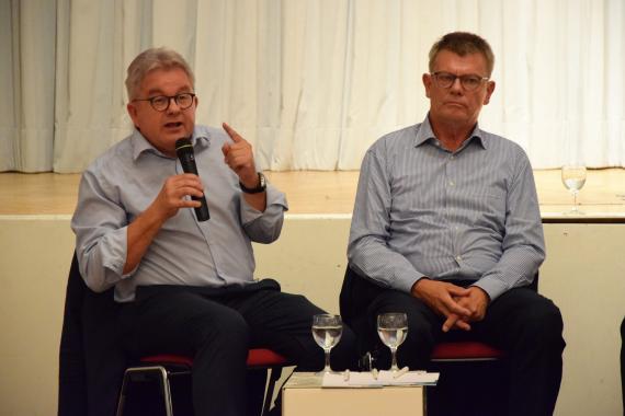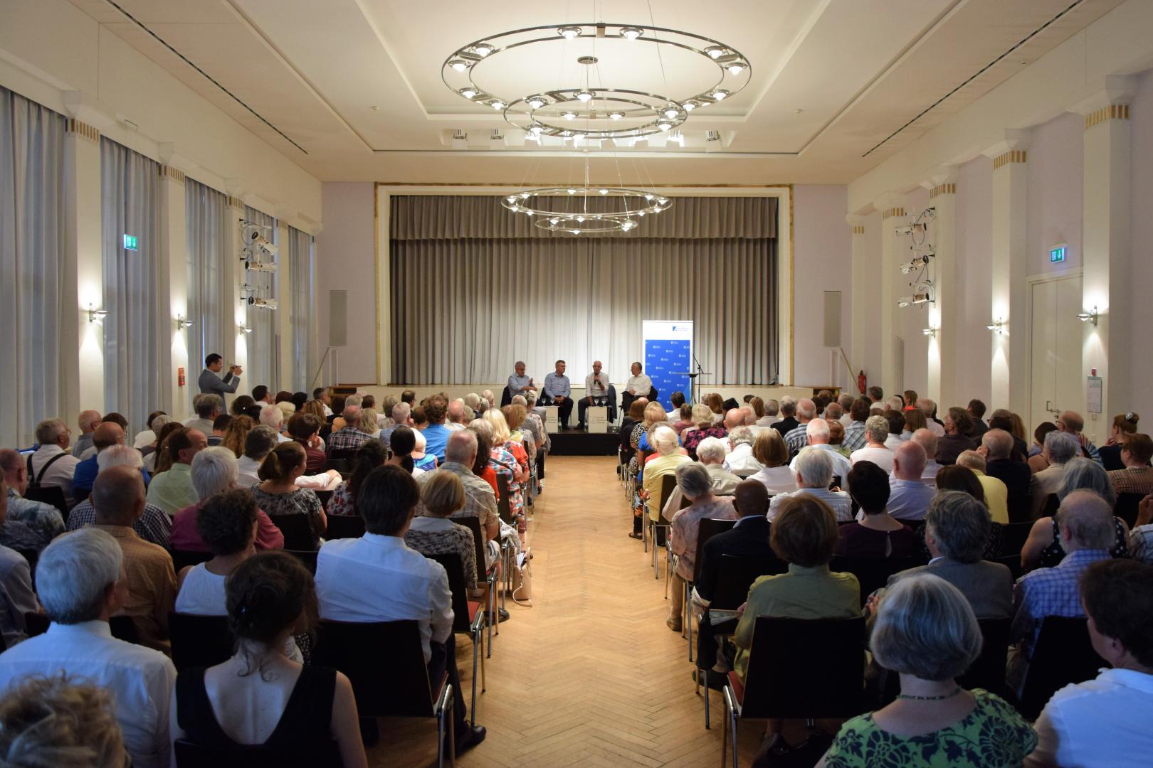 Repräsentant für Ungarn war, sowohl an diesem Abend, als auch beruflich Minister a. D. Zoltán Balog, Beauftragter des Ministerpräsidenten und außerordentlicher und bevollmächtigter Botschafter. Für Österreich anwesend war Dr. Csaba Székely, Politikwissenschaftler, Journalist und ehemaliger Generaldirektor der Raab-Oedenburg-Ebenfurter Eisenbahn AG. Deutscher Gast der Runde war Baden-Württembergs Minister der Justiz und für Europa, Guido Wolf. Die drei Referenten berichteten von ihren unterschiedlichsten Erlebnissen im Kontext des Paneuropäischen Picknicks – vom Heben des Schlagbaums an der Grenze, über das Geschehen im Landratsamt in Tuttlingen, bis hin zur elterlichen Reaktion an der Grenze.