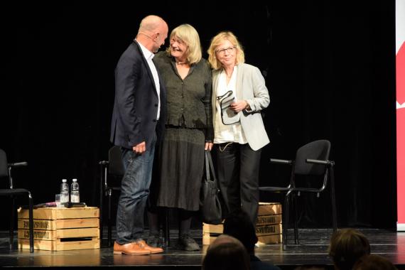 Sabine Constabel berichtete dabei von ihrer jahrelangen Erfahrung als Sozialarbeiterin im Bereich der Prostitution in Stuttgart.Ganz konkret schilderte sie eine große Veränderung der Prostitution, auch zusammenhängend mit dem Prostitutionsgesetz von 2002. Diese Veränderung sei, dass heute zum größten Teil junge Frauen aus Osteuropa, häufig Opfer von Menschenhandel und ohne Deutschkenntnisse, in Deutschlands Bordellen zu finden sind. Sie sprach außerdem von einem Preisfall und schrecklichen und brutalen Szenen von seelischer und körperlicher Gewalt, die hierzulande tagtäglich in Verbindung mit Prostitution auftreten und die die betroffenen Frauen zerbrechen lassen. Die Arbeit, die Stuttgart hier leistet, das heißt breite Angebote für Betroffene bis hin zur sofortigen Ausstiegshilfe, sei ein Vorbild für Städte in ganz Deutschland. Dies bestätigte auch Frau Schwarzer, die den von Constabel gegründeten Verein Sisters - für den Ausstieg aus der Prostitution e.V. unterstützt und im Rahmen ihrer Tätigkeit als Journalistin und Aktivistin für die sogenannte Freierbestrafung (ein Modell nach Norwegens und Schwedens Vorbild) kämpft.