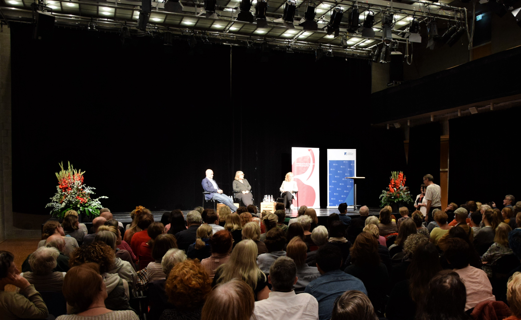 Der Abend begann mit einer Begrüßung durch die stellvertretende Direktorin der vhs Stuttgart, Frau Barbara Brodt-Geiger, in der sowohl der Konrad-Adenauer-Stiftung gedankt wurde,als auch die auf dem Podium vertretenen Gäste vorgestellt wurden. Anschließend übernahm Dr. Wolfgang Niess, der das Podiumsgespräch mit Alice Schwarzer und Sabine Constabel moderierte.