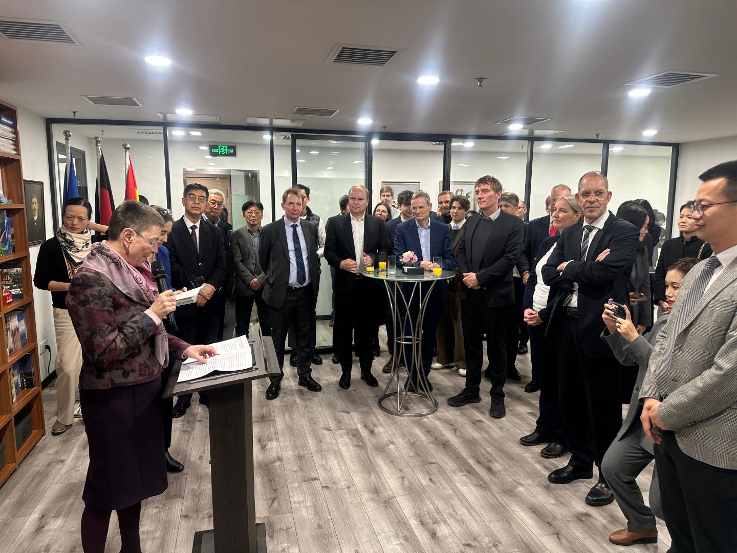 Höhepunkt des Aufenthalts in Peking war der Festempfang anlässlich des 30-jährigen Jubiläums der Konrad-Adenauer-Stiftung in Peking. Über 80 Vertreterinnen und Vertreter deutscher und chinesischer Institutionen, langjährige Partner sowie (Alt-)Stipendiatinnen und Stipendiaten kamen in den Räumen des Auslandsbüros zusammen, um drei Jahrzehnte Stiftungsarbeit in China zu würdigen.