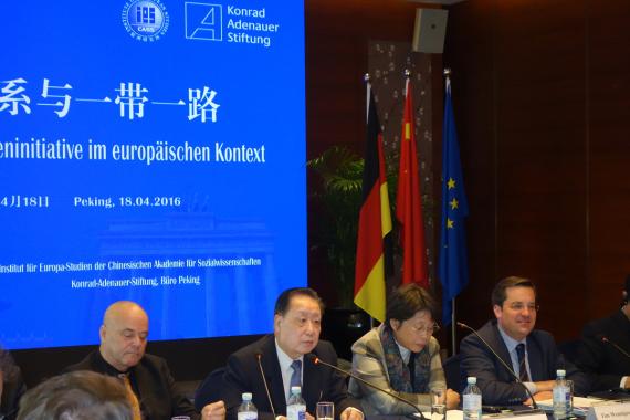 In seinen einführenden Bemerkungen betonte Tim Wenniges, Leiter des KAS-Büros Shanghai, dass die Seidenstraßeninitiative noch ein sehr junges Vorhaben sei, dessen volles Ausmaß sich noch entfalten werde. Der Ehrenvorsitzende der Zweiggesellschaft für Deutschland-Studien und ehemalige chinesische Botschafter in Deutschland, Mei Zhaorong, hob vor allem die Wichtigkeit der Kooperation mit anderen Ländern hervor. Nur gemeinsam ließe sich das Projekt am Ende in die Realität umsetzen. Asad Beg, Leiter der Politischen Abteilung der EU-Delegation in Peking teilte diese Auffassung. Der Europäische Fonds für strategische Investitionen arbeite hier eng mit dem chinesischen Seidenstraßen-Fonds zusammen, um unter anderem die Konnektivität beider Regionen durch Informations- und Kommunikationstechnologie zu verbessern.