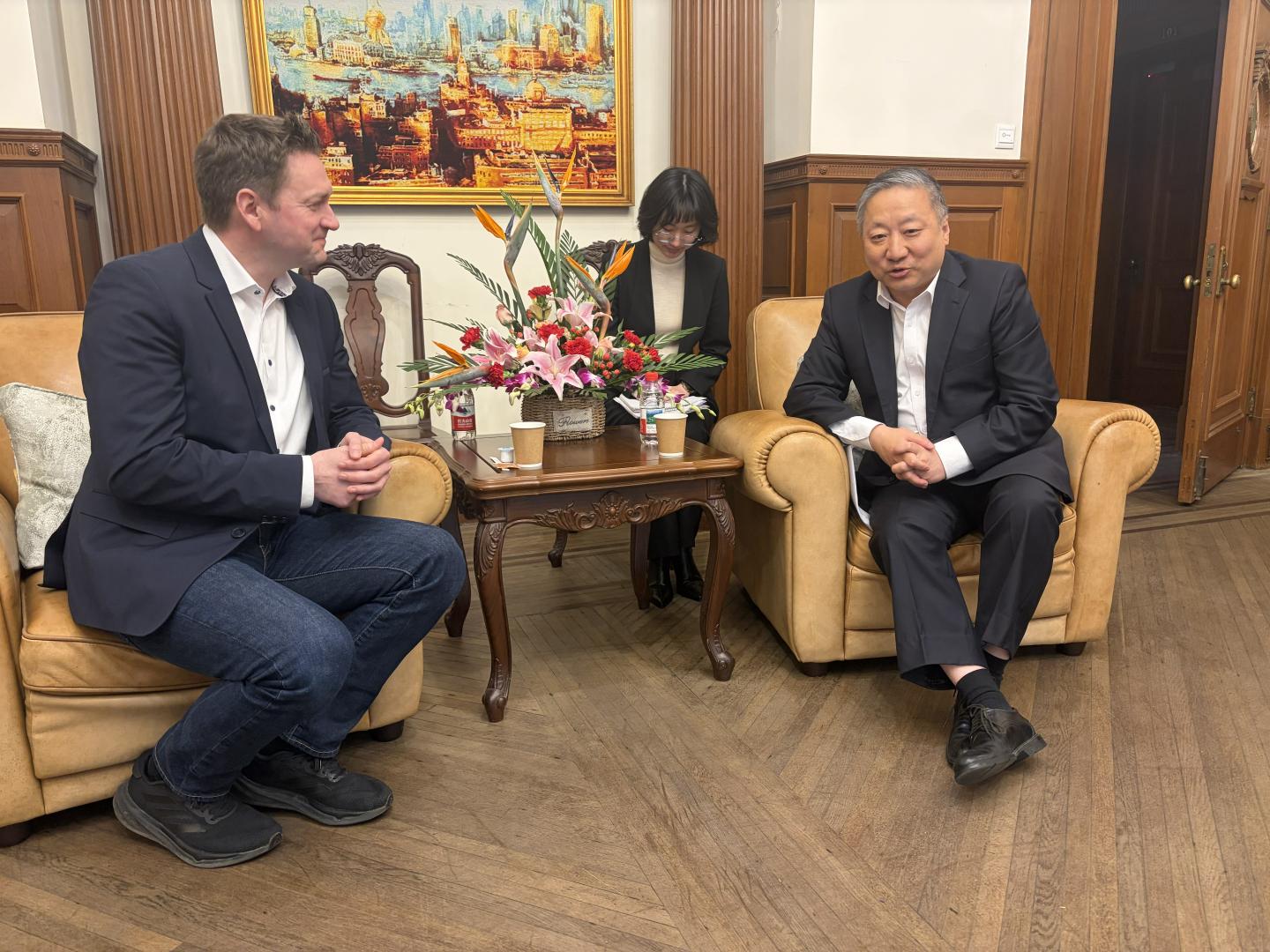 China befindet sich in einem ökonomischen Paradox: Zum einen stagniert der Konsum und das Land befindet sich in einer Immobilienkrise und deflationären Tendenzen. Zum anderen bilden sich staatlich geförderte, hochproduktive Innovationscluster mit starkem Skalierungspotenzial. Um sich einen Überblick über die aktuellen Entwicklungen zu verschaffen, standen die Industrie- und Innovationscluster Shanghai, Hangzhou und Shenzhen im Mittelpunkt der Gespräche von David Gregosz. Begleitet wurde er von Tim Peter, Referent für Europäische Wettbewerbsfähigkeit bei der Konrad-Adenauer-Stiftung in Berlin.