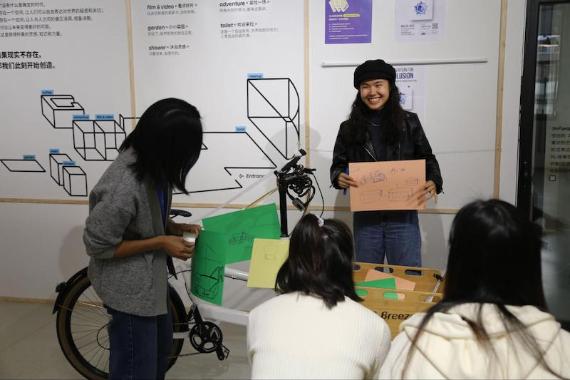Im praktischen Teil stellten drei Moderatoren – eine interdisziplinärer K-12-Lehrplandesignerin, eine Grafikdesignerin und eine Praktikerin für Bildungsinnovation – in einem Co-Design-Workshop die Design-Challenges vor Ort vor und luden die Zuhörer ein, an Co-Creation-Challenges teilzunehmen. Während des Workshops setzten die teilnehmenden Studenten der NYU Shanghai ihre Theorien in die Praxis um. Angela Guo arbeitete mit einem anderen hörgeschädigten Workshop-Teilnehmer zusammen, um einen Weihnachtsbaum zu bauen, der Menschen mit Hörverlust visuell darauf aufmerksam machte, dass jemand an der Tür stand. Chen Yinfan erstellte schnelle Prototypen für Lastenfahrräder, die die Bedürfnisse einer vielfältigen Gruppe von Benutzern erfüllen konnten. Sie entwarf den Prototyp des Lastenfahrradkorbs unter Verwendung von recycelten Materialien und leicht verfügbaren Ressourcen.