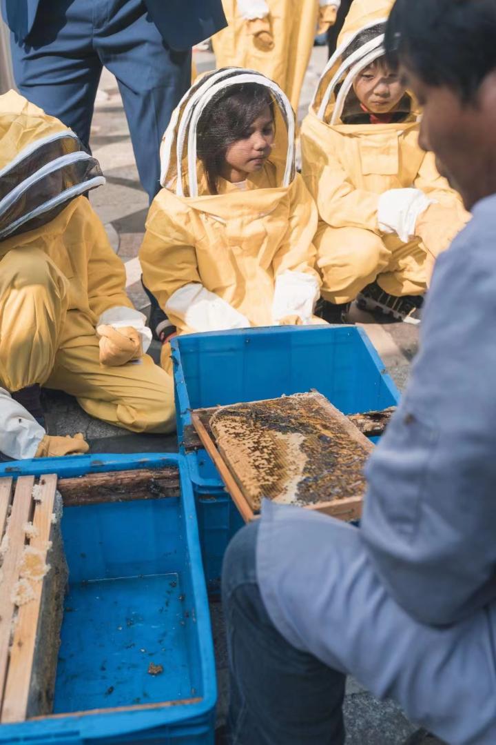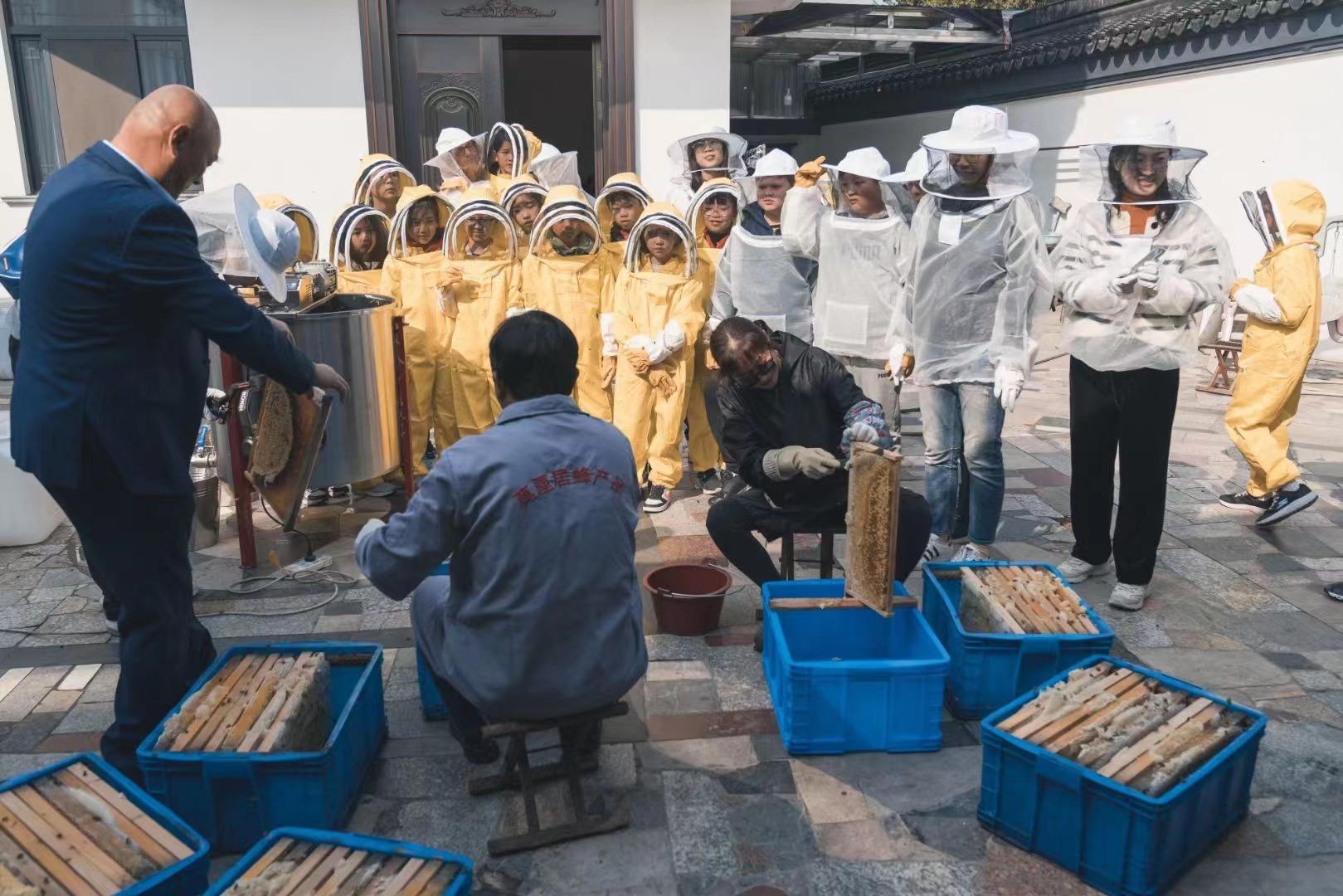Neben theoretischen Aspekten wurde die Bedeutung der Biodiversität auch ganz praktisch vermittelt: Unter Anleitung erfahrener Imker beobachteten die Schülerinnen und Schüler die Lebensgewohnheiten von Bienen aus nächster Nähe. Sie lernten dabei Prozesse wie das Honigsammeln und die Bestäubung kennen. Nach dem Besuch des Bienenstocks hatten die Schüler selbst die Gelegenheit, Honig zu schleudern.