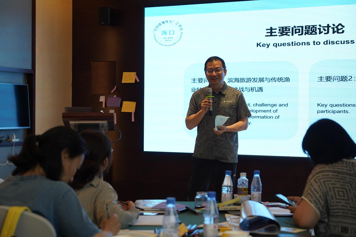 Während des Workshops diskutierten die Teilnehmer eingehend mit den Dozenten vom China Blue Sustainability Institute, der ersten chinesischen NGO, die sich für die Förderung der nachhaltigen Entwicklung von Küstengemeinden einsetzt. Projektmanagerin WANG Songzi hielt einen Vortrag zum Thema „Transformation traditioneller kleiner Fischereigemeinschaften in der Provinz Hainan“, der sich den Herausforderungen und Problemen der lokalen Fischern widmete.