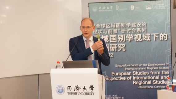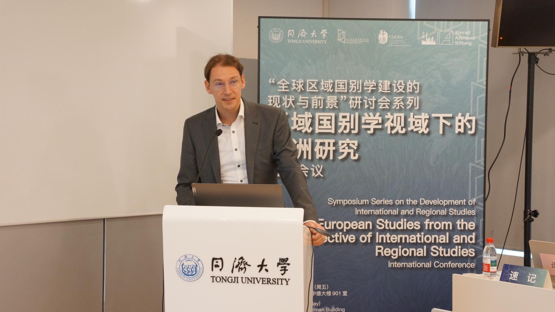 Die Konferenz wurde von David Merkle, Leiter des KAS-Büros Shanghai, und Prof. Dr. ZHENG Chunrong, Direktor für German Studies Center der Tongji-Universität, eröffnet. In ihren Begrüßungsworten betonten beide die wachsende Bedeutung der Area Studies angesichts globaler Umbrüche und die Notwendigkeit, durch vergleichende Perspektiven und kritische Selbstreflexion etablierte Wissensbestände zu hinterfragen. Diese thematische Klammer zog sich durch die folgenden Vorträge und Diskussionen.