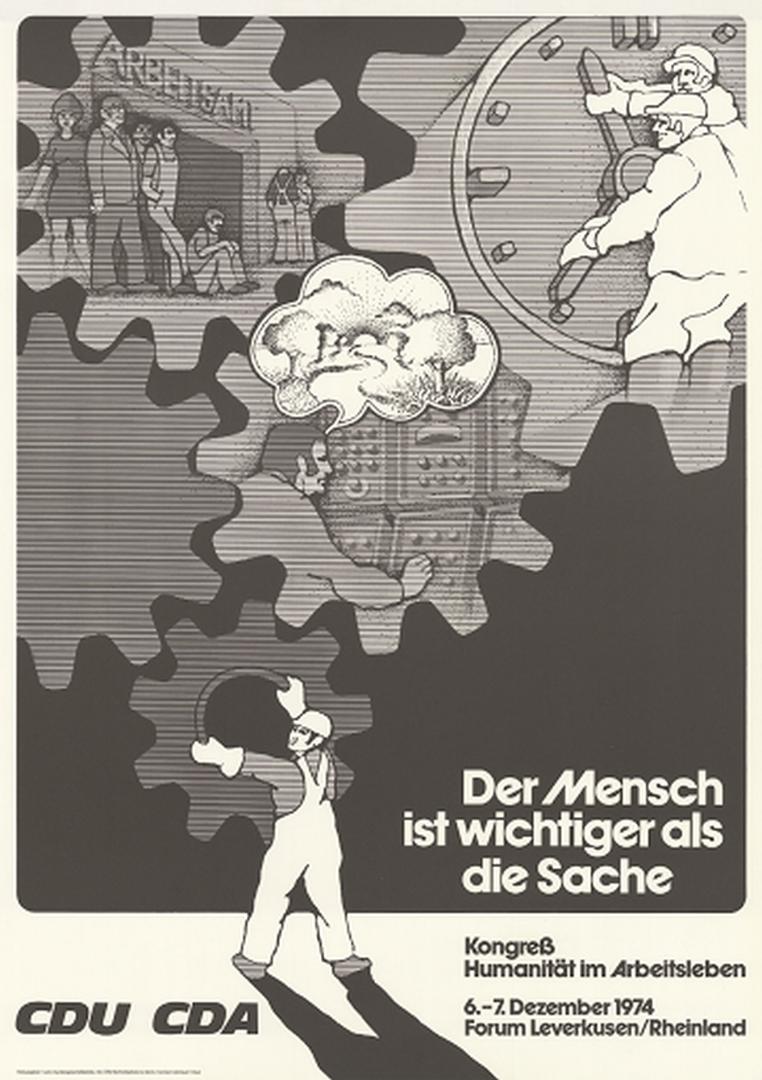 Es brachte aber die Grundüberzeugung zum Ausdruck, dass die Wirtschaft dem Menschen zu dienen habe und nicht umgekehrt. Arbeit sollte nicht nur als "Ware" oder bloßer Broterwerb gelten, sondern auch als "sittliche Leistung", wie die christlich-sozialen Verfasser der Kölner Leitsätze es bereits im Juni 1945 formuliert hatten. Das erste Grundsatzprogramm der CDU, 1978 auf dem Bundesparteitag in Ludwigshafen verabschiedet, sollte an diese Überzeugung anknüpfen und Arbeit als „nicht nur Broterwerb, sondern auch eine Form der Selbstverwirklichung“ beschreiben. Die Sozialausschüsse sollten auch dazu dienen, die Tatsache zu kompensieren, dass man nach dem Zweiten Weltkrieg zugunsten der neuen Einheitsgewerkschaft auf die Wiedergründung christlicher Gewerkschaften verzichtete. Zudem betrachtete man eine starke Vertretung der Interessen der christlichen Arbeiterschaft als zwingende Voraussetzung für den angestrebten Volksparteicharakter der Union. Trotz anfänglicher Vorbehalte akzeptierte man schließlich das von Alfred Müller-Armack entwickelte und von Ludwig Erhard überzeugend propagierte Konzept der Sozialen Marktwirtschaft und half mit, dieses durchzusetzen.