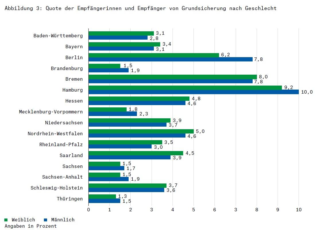 7 Statistische Ämter des Bundes und der Länder: Mindestsicherungsquote, Bundesländer nach Geschlecht, Stuttgart 2023, www.statistikportal.de/de/sbe/ergebnisse/mindestsicherung/b-11-mindestsicherungsquote [letzter Zugriff: 05.03.2024].