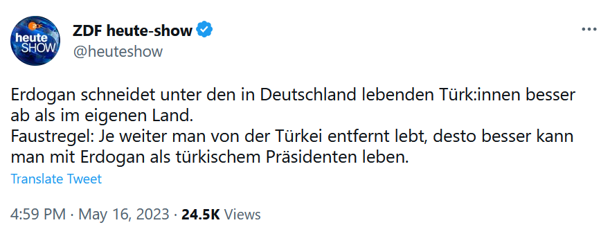 [3] Deniz Yücel, Die Schlüsselrolle der Auslandstürken für Erdogans Zukunft, Die Welt, 03.05.2023.