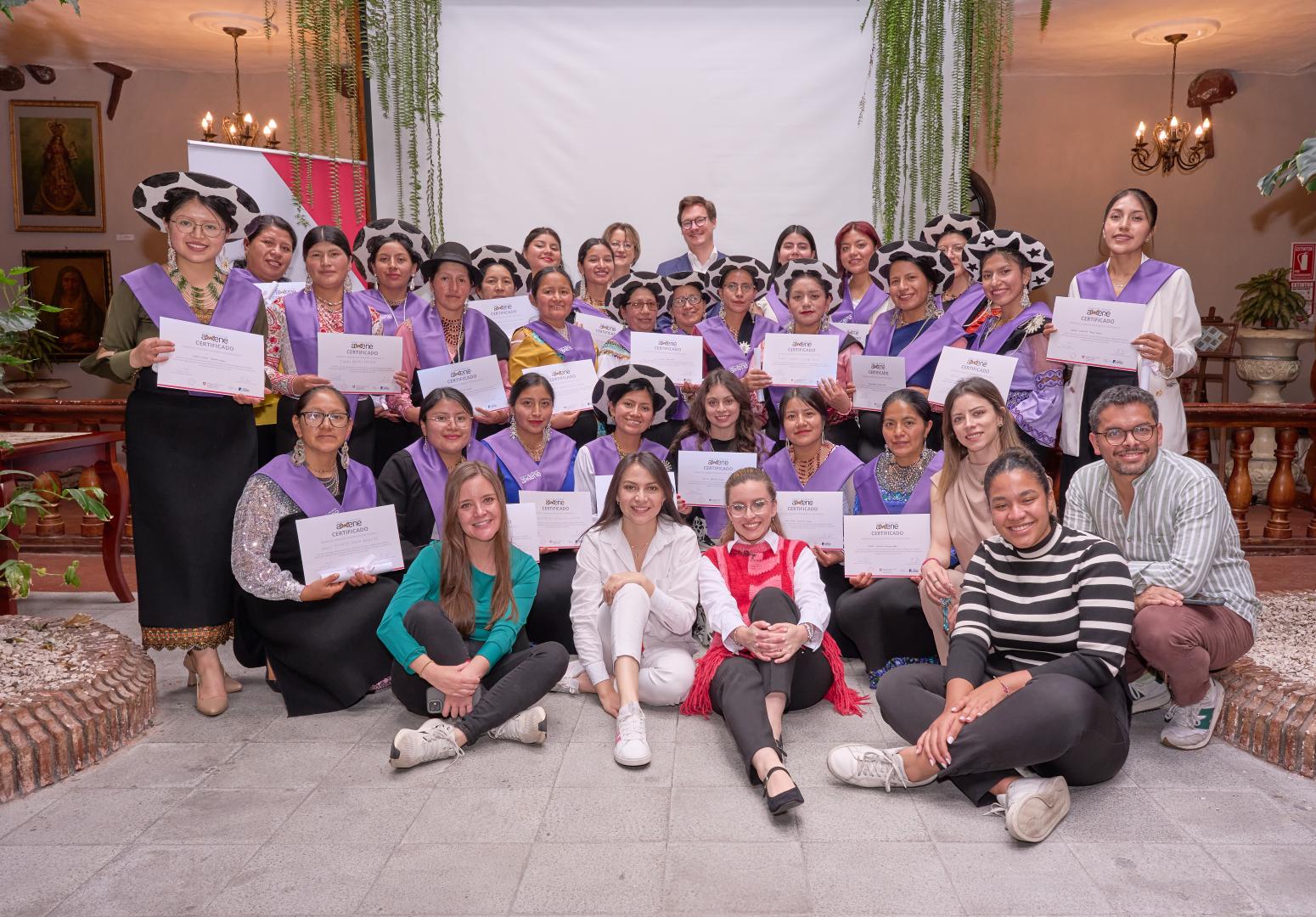 Das Projekt hat eine spielerische Methodik, so dass die Teilnehmerinnen in sechs Modulen Wissen und Fähigkeiten erwerben: persönliche Entwicklung und Selbsterkenntnis, Gewaltprävention und Schutz von Rechten, Gemeinschaftsführung, Erstellung lokaler Entwicklungsagenden, politische Partizipation unter Berücksichtigung der Geschlechterperspektive, Geschäftsentwicklung und Lebensunterhalt.Darüber hinaus fand eine Abschlussfeier mit einem kulturellen Akt des Austauschs eines Stabs der Saraguro-Kultur und der Übergabe von Zertifikaten an die 30 Stipendiaten in Anwesenheit des Direktors der KAS Ecuador, Johannes Hügel, und der Schweizer Botschafterin, Marianne Jenni, statt. Das Projekt AWENE, dessen Name in der indigenen Sprache "Wao Tededo" soviel wie "Führung, die über sich hinauswächst und ihre Früchte trägt" bedeutet, ist das Ergebnis einer multidisziplinären Arbeit, die auf partizipativen Prozessen, innovativen Lehrmethoden und neuen Informationstechnologien unter Einbeziehung der Traditionen und Sitten beruht.