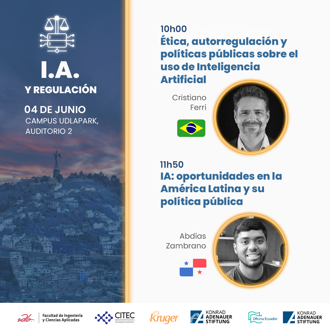 Diese Veranstaltung ist das Ergebnis einer Zusammenarbeit zwischen der Konrad-Adenauer-Stiftung (KAS Ecuador), dem Regionalprogramm der Allianzen für Demokratie und Entwicklung mit Lateinamerika der KAS (ADELA), der ecuadorianischen Kammer für Innovation und Technologie (CITEC) und der Universidad de Las Américas (UDLA), mit Unterstützung der Kruger Corporation und Google.