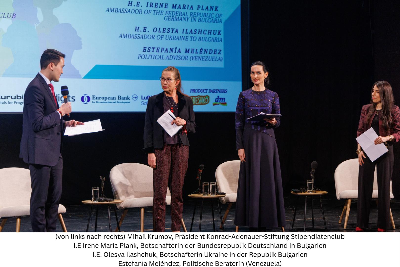 Im Rahmen der Diskussion „Navigieren in Krisenzeiten“, moderiert von Michail Krumow (Präsident des Stipendiatenclubs der KAS Bulgarien), nahmen teil: