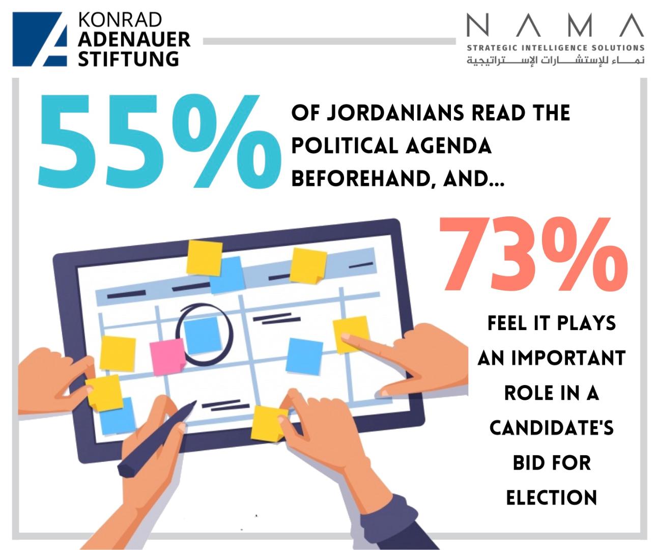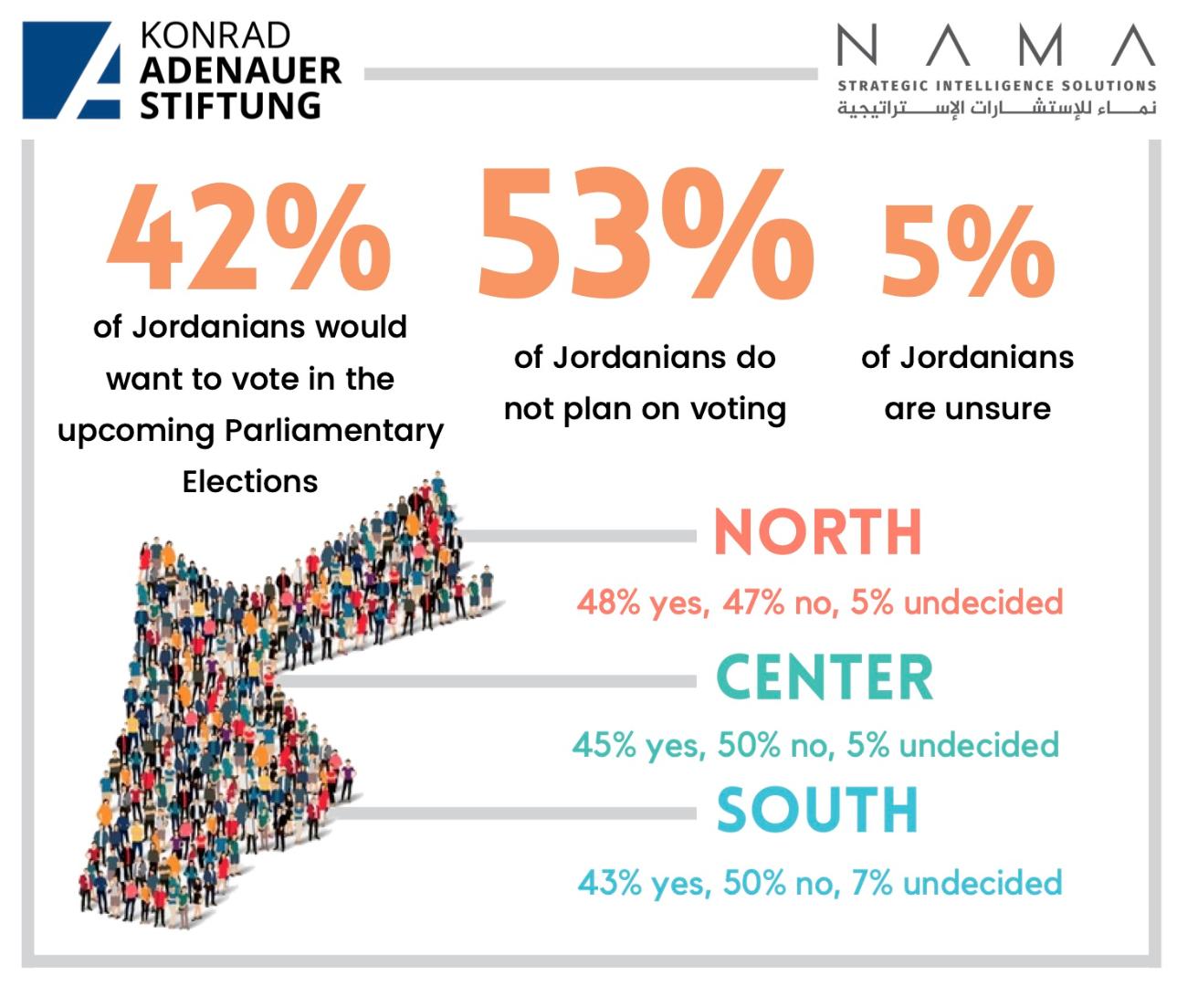 Nama Strategic Intelligence Solutions, in cooperation with the KAS Jordan Office, conducted a nationally representative survey to explore Jordanians’ perceptions towards the upcoming Parliamentary Elections.