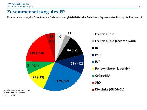 Der EVP-Parteienbarometer zeigt die Stärke der europäischen Parteienfamilien in aktuellen Umfragen auf - mit besonderem Schwerpunkt auf der bürgerlich-christdemokratischen Europäischen Volkspartei (EVP).