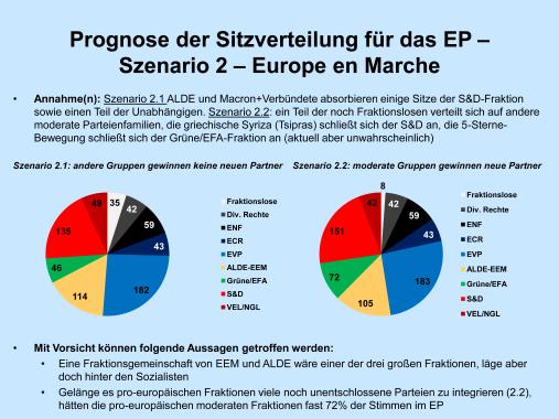 - Je nach Szenario würden 65-72% der Abgeordneten moderaten Gruppen angehören (EVP, S&D, Liberale (+ Macron) , Grüne)