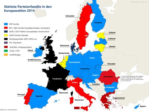 EVP-Parteienfamilie in der EU | Wahlergebnisse der größten EVP-Mitgliedspartei in den letzten nationalen Parlamentswahlen | Stärkste politische Familie in Umfragen | Regierungsbeteiligung EVP-Parteien | Staats- oder Regierungschefs nach politischer Familie | Prognosen der Sitzverteilung für das EP | Europawahlergebnisse der EVP-Parteien 2014