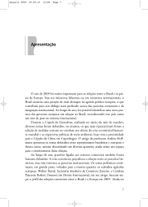 Diese Publikation beinhaltet Artikel von Spezialisten aus verschiedenen Ländern, die die momentanen Beziehungen zwischen Brasilien und den europäischen Ländern analysieren. Hierbei liegt der Fokus insbesondere auf den Themengebieten internationale Politik, Umweltpolitik, Wirtschaft, Handel und Recht.