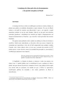 Der Klimawandel und die damit einhergehenden Veränderungen im Klimasystem können direkt menschlichem Handeln zugeschrieben werden. Brasilien könnte eines der am stärksten betroffenen Ländern sein, im Speziellen die Amazonasregion. Abgesehen davon, dass Brasilien ein Land mit riesigen Territorien ist, ist die Emissionsverteilung pro Region unproportional, in Anbetracht der Abholzung des Amazonas, der den größten Anteil der brasilianischen Emissionen in sich vereint.Dieser Artikel ist nur auf Portugiesisch erhältlich.
