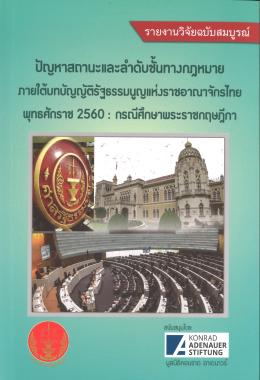 The publication of the Office of the Constitutional Court of Thailand (OCC) supported by the Konrad-Adenauer-Stiftung e.V. in Thailand aims at disseminating the legal academic work concerning the constitutional laws and other issues related to the current constitution. For this publication, the research inside studied the implementation of the “Royal Decree” under the provision of the Thai constitution as well as its problems of the status and legal hierarchy.