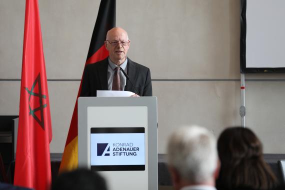 In seiner Begrüßung unterstrich Prof. Dr. Norbert Lammert, Vorsitzender der Konrad-Adenauer-Stiftung, die kulturelle Nähe, welche Europa und Nordafrika verbinden würde. Gleichzeitig müsse Europa mittlerweile verstehen, dass die unsrigen Herausforderungen häufig andere seien als die der nordafrikanischen Nachbarn und Partner, welche gleichzeitig auch ihre Interessen heutzutage stärker kommunizieren würden.