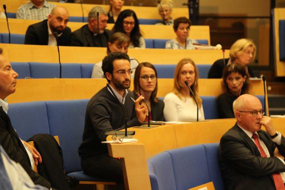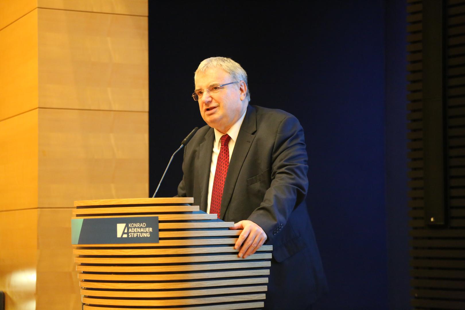 So ging bereits Dr. Gerhard Wahlers, stellvertretender Generalsekretär der Konrad Adenauer Stiftung e.V. in seiner Begrüßung kurz auf den Vorschlag der Verteidigungsministerin ein. Ebenso der ehemalige Vorsitzende der CDU/CSU-Fraktion, Volker Kauder. Er konnte u.a. auch von den Reaktionen aus der CDU/CSU-Fraktion berichten. Breiten Raum nahm allerdings auch seine Würdigung der an diesem Abend vorgestellten Studie ein. Der Autor der Studie, Dr. Otmar Oehring ging im Anschluss auf einige Punkte der Studie ein, die für die Christen in Nordsyrien entscheidend im Hinblick auf eine Perspektive in Nordsyrien sind. Er machte deutlich, dass es noch zu früh sei, eine abschließende Bewertung der Auswirkungen der Invasion der Türkei auf die Zukunftsperspektiven der Christen in der Region zu geben. Aufgabe des Leiters des Teams Außen-, Sicherheits- und Europapolitik der Konrad Adenauer Stiftung, Nils Wörmer war es dann, die Genese der Idee der Einrichtung einer Sicherheitszone in Nordsyrien darzustellen und eine Einordnung des Vorschlags der Verteidigungsministerin vorzunehmen. Zum Abschluss berichtete Dipl.Ing. Amill Gorgis, Ökumenebeauftragter der Syrisch-orthodoxen Gemeinden In Berlin von den Erwartungen und Hoffnungen der Christen in Nordsyrien.