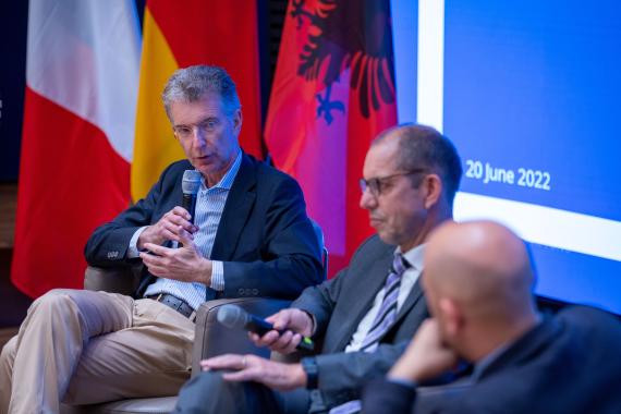 Die hochrangig besetzte Veranstaltung stand dabei unter dem Eindruck der weitreichenden Auswirkungen des Krieges in der Ukraine auf die Perspektiven des Westbalkans. Neben Vertretern zahlreicher in Berlin ansässiger Botschaften nahmen unter anderem auch Abgeordnete der CDU/CSU-Bundestagsfraktion und Vertreter deutscher Bundesministerien an der Diskussionsveranstaltung teil. Ko-Schirmherren waren in diesem Jahr der Botschafter Albaniens und die Botschafterin Frankreichs.