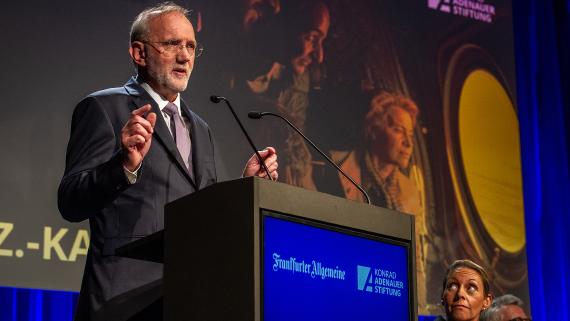 Zum Abschluss fasste F.A.Z.-Herausgeber Berthold Kohler die Erkenntnisse der vorangegangenen Diskussion zusammen. Man habe einen „selbstkritischen Blick“ auf die Rolle Europas in der Welt erlebt, sagte er und hob das Thema Geschlossenheit als eines von besonderer Bedeutung hervor. Zudem würdigte Kohler Klaus-Dieter Frankenberger, der Ende des Jahres in den Ruhestand geht und die F.A.Z.-KAS-Debatte über Jahre hinweg mit seiner Expertise bereichert hat.