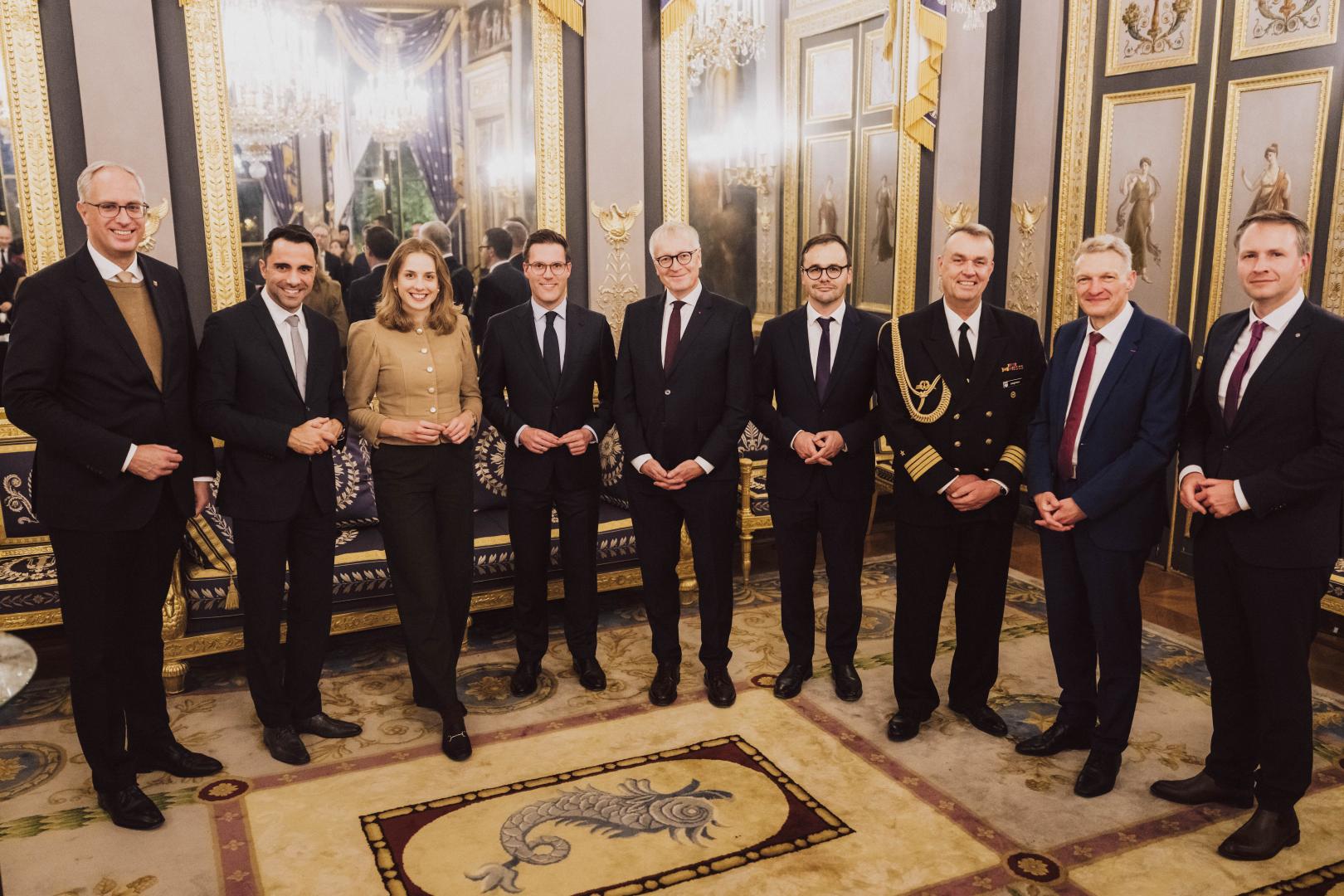 Die Delegation hatte zudem die große Ehre, an der Flammenzeremonie am Grab des Unbekannten Soldaten am Arc de Triomphe teilzunehmen und dort einen Kranz niederzulegen. Anschließend fand ein Abendempfang im Palais Beauharnais, der Residenz des deutschen Botschafters, statt. Gastgeber war Botschafter Stephan Steinlein, begleitet von Vertreterinnen und Vertretern der Deutschen Botschaft.