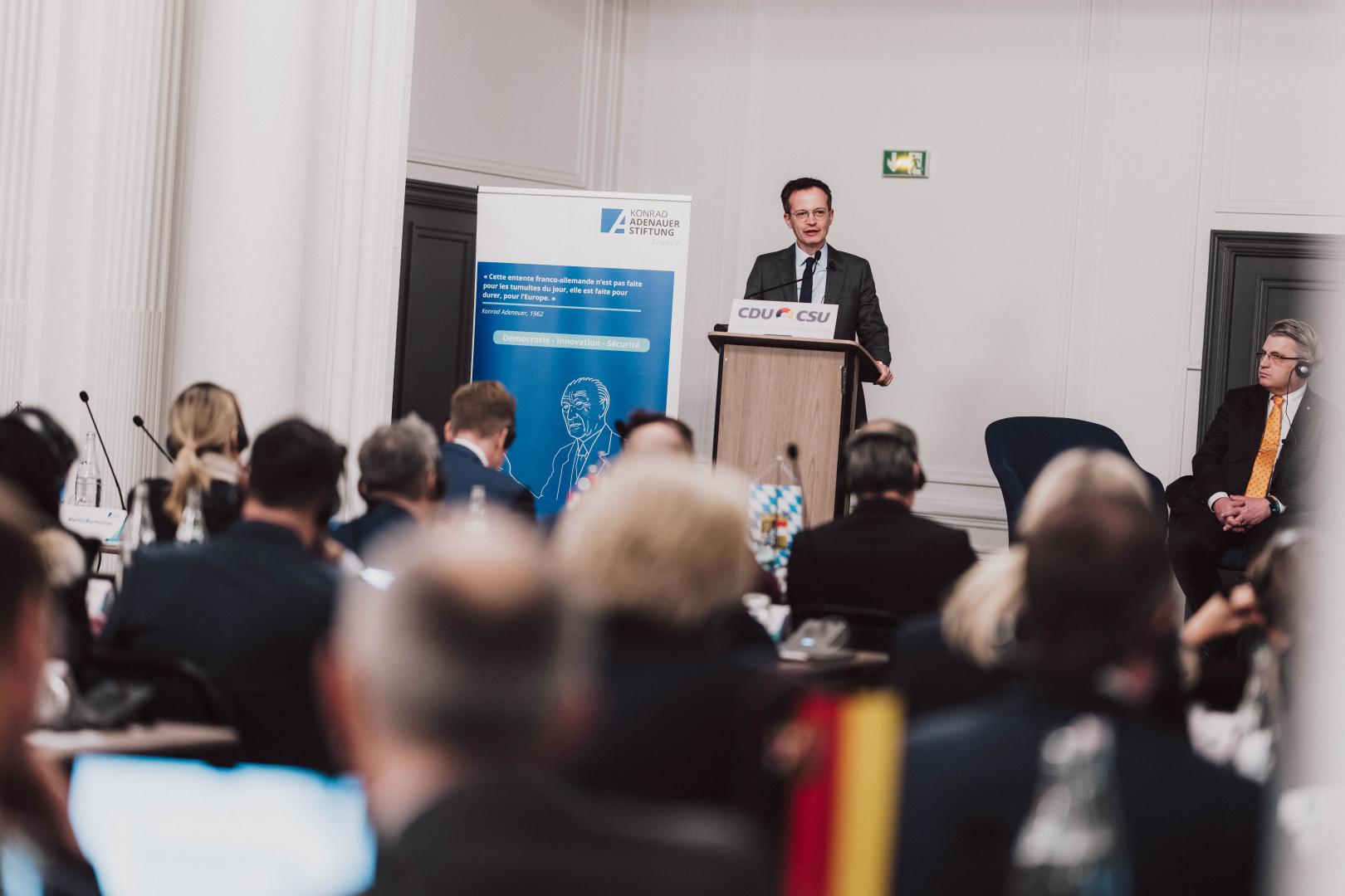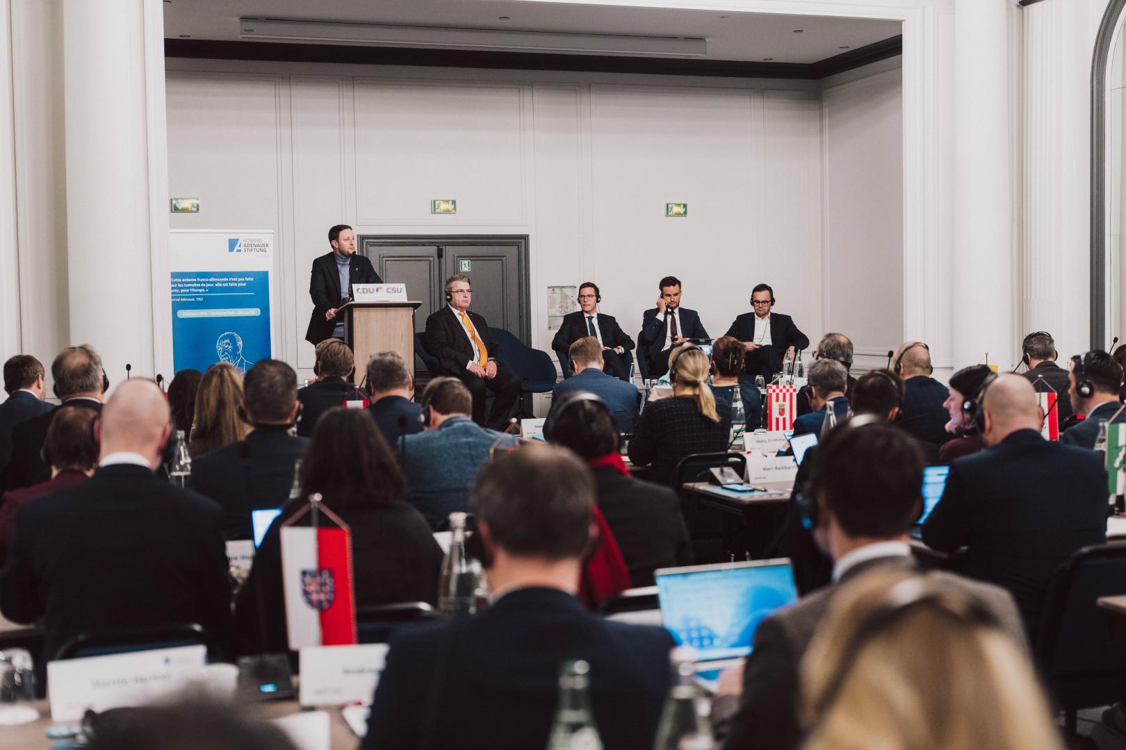 Es folgte ein Gespräch mit François-Xavier Bellamy, stellvertretender Parteivorsitzender der Les Républicains, und Pierre-Henri Dumont, stellvertretender Generalsekretär der Partei. Beide erläuterten die strategische Ausrichtung von Les Républicains und gingen auf aktuelle Herausforderungen der französischen Innenpolitik ein.