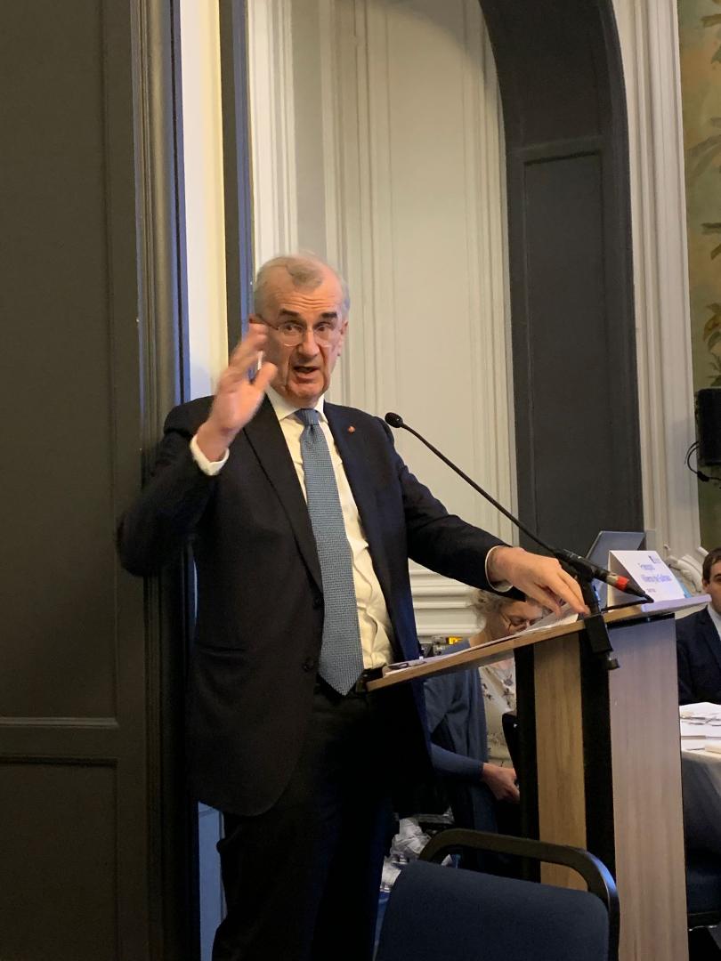 Zum Abschluss des Programms hielt François Villeroy de Galhau, Gouverneur der Banque de France, eine Keynote im Rahmen eines Mittagessens. Er setzte wirtschafts- und finanzpolitische Impulse und diskutierte mit der Delegation über die geldpolitische Lage in Frankreich und der Eurozone.