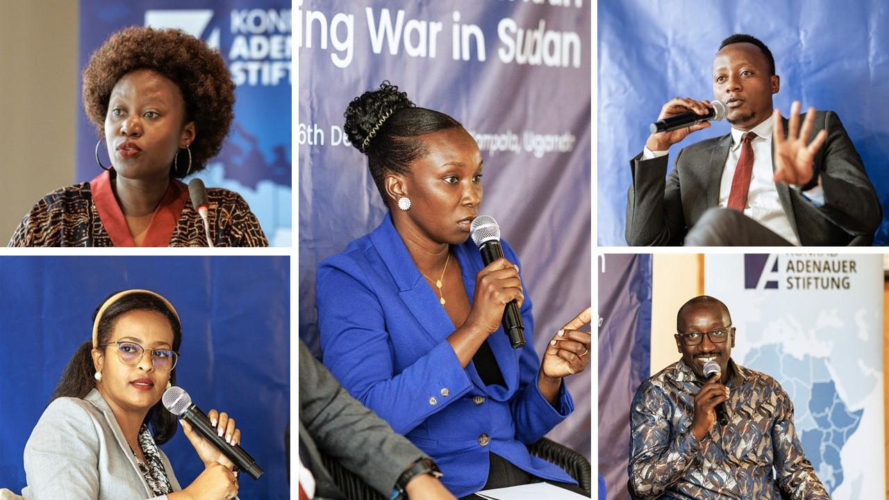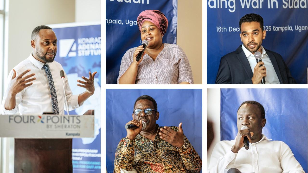 Das zweite Panel befasste sich mit der Rolle von Geflüchteten bei Lösungsansätzen für einen möglichen Frieden im Sudan. Das Panel wurde von Edgar Mwine, Projektmanager des KAS RP SIPODI Ostafrika, moderiert und umfasste Mohamed Badawy, Anwalt beim Africa Centre for Justice and Peace, Sojoud Elgarrai, Koordinatorin von Human Rights Defenders in Exile, die unabhängige sudanesische Wissenschaftlerin Aseel Abdalla, sowie Khalid Mishin, Sprecher des Youth Citizens Observers Network (YCON). Das Panel stellte fest, dass sich der Krieg im Sudan weiterentwickelt habe und neue Allianzen sowie neue Formen der Polarisierung entstanden sind, die – aufgrund ihrer geografischen und ethnischen Uneindeutigkeit - Interventionen und Lösungsbemühungen erheblich erschwerten. Sie riefen zu Deeskalation und zu stärkerem internationalen Druck auf, um einen nachhaltigen Waffenstillstand zu erreichen und den Weg für den Beginn eines politischen Prozesses zu ebnen.