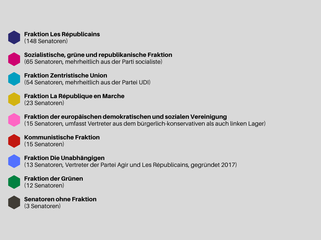 - Das bürgerlich-konservative Lager kann seine Mehrheit im Senat halten und etabliert den Senat als Gegenpol im parlamentarischen System Frankreichs.