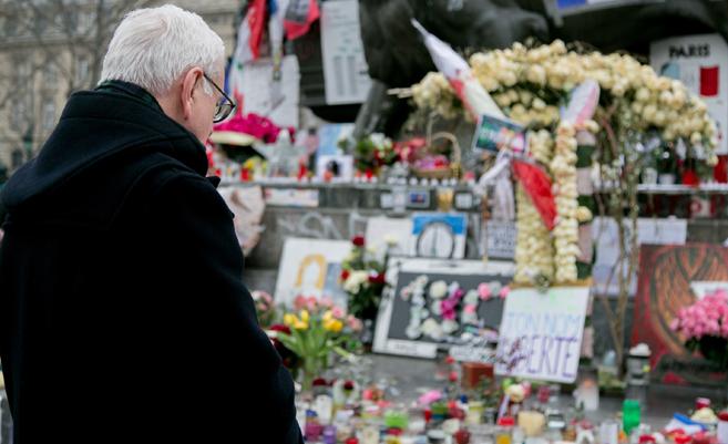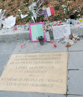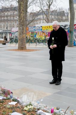Zu Beginn seines Besuchs in Paris hatte Pöttering das Denkmal auf dem Place de la République in Paris besichtigt. Dieses war nach den Attentaten auf die Redaktion der Satirezeitung „Charlie Hebdo“ und einen Supermarkt am 7. und 9. Januar 2015 sowie nach den Anschlägen vom 13. November 2015 zu einem spontanen Gedenkort der Pariser Bevölkerung geworden, bei dem die Menschen bis heute Kerzen aufstellen und Blumen ablegen. An einer vor wenigen Tagen durch Staatspräsident Francois Hollande enthüllten Gedenkplatte legte Pöttering Blumen nieder und gedachte der insgesamt über 140 Ermordeten.