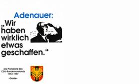 Adenauer: "Wir haben wirklich etwas geschaffen." Die Protokolle des CDU-Bundesvorstands 1953-1957. Bearbeitet von Günter Buchstab. 1380 S. (Forschungen und Quellen zur Zeitgeschichte, Bd. 16), Droste 1990.