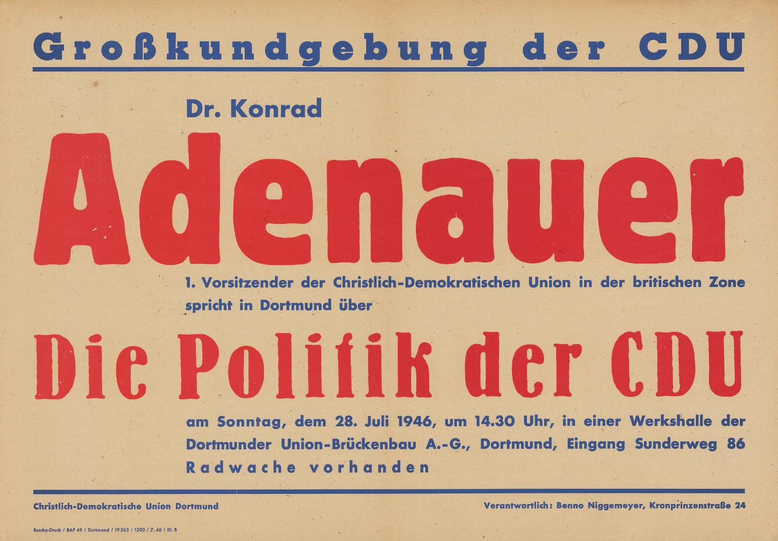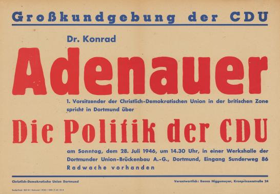 Auf dem Godesberger Reichstreffen der neugegründeten christlich-demokratischen Parteigruppierungen im Dezember 1945 wurde ein „Zonenverbindungsausschuss“, auch „Intenzonenausschuss“ genannt, mit Sekretariat in Frankfurt am Main eingesetzt, der Informationen aller Landesparteien sammeln und eine Reichstagung vorbereiten sollte. Als im Frühjahr 1946 direkte Kontakte zwischen den Landesvorsitzenden zustande kamen, wurde Konrad Adenauer, Vorsitzender der CDU der britischen Zone, beauftragt, beim Alliierten Kontrollrat Schritte für die Gründung der Gesamtpartei einzuleiten und das Reichstreffen vorzubereiten. Da sich die Landesvorsitzenden über Zusammenschluss, Namen und Programm der Union zunächst nicht einigen konnten, gründeten sie im August. 1946 die Arbeitsgemeinschaft der CDU und CSU, die aus dem neunköpfigen Vorstand und dem Plenum mit 21 Delegierten bestand. Der im Februar 1947 gewählte vorläufige Vorstand amtierte de jure bis 1950 (Konrad Adenauer, Friedrich Holzapfel, Hugo Hickmann, Jakob Kaiser, Erich Köhler, Ernst Lemmer, Josef Müller, Ulrich Steiner und nachträglich Peter Altmeier). Bei den Tagungen wurden aktuelle Probleme wie Entnazifizierung, Versorgungslage, Verfassungsfragen, gesamtdeutsche Repräsentation, außenpolitische Lage, Konferenzen der Alliierten sowie Organisationsfragen beraten. Das Sekretariat der Arbeitsgemeinschaft in Frankfurt am Main unter Leitung von Generalsekretär Bruno Dörpinghaus organisierte die Sitzungen, koordinierte die Vorschläge der Landesverbände und ihrer Vorsitzenden und knüpfte Kontakte zu christlichen Parteien im Ausland. Es sorgte für den Informationsaustausch zwischen den Parteigremien auf Zonen- und Länderebene sowie den CDU/CSU-Fraktionen im Wirtschaftsrat und Parlamentarischen Rat. Seit Juni 1947 gab er einen Pressedienst heraus, den „Union-Dienst“, der im Januar 1948 in „Deutschland-Union-Dienst“ (DUD) und dann in „Union in Deutschland“ umbenannt wurde. Die Zentrale hatte maßgeblichen Anteil an der Organisation des Bundestagswahlkampfes 1949. Die Finanzierung des Generalsekretariats erfolgte durch Umlagen der Landesverbände, Abonnements des DUD und Spenden. Versuche, die Union als gesamtdeutsche Partei zu bilden, scheiterten an Differenzen zwischen Konrad Adenauer, Jakob Kaiser und Josef Müller, dem Einspruch der französischen Besatzungsmacht, den Rivalitäten der Landesvorsitzenden und dem Beharren der CSU auf ihrer Selbständigkeit. Wegen der Unterdrückung der CDU in der SBZ, die Ende 1947 zur Absetzung von Jakob Kaiser und Ernst Lemmer führte, kam es im Herbst 1948 zum Abbruch der Zusammenarbeit der Arbeitsgemeinschaft mit der von Otto Nuschke geführten Ost-CDU. Mit Übergabe der Londoner Empfehlungen (1. Juli 1948) verlagerte sich das politische Gewicht auf die Vorsitzenden der Landesverbände, die fortan die Weichenstellungen für die CDU und CSU trafen (u.a. Parlamentarischer Rat, Grundgesetz, Bundestagswahl und Gründung der CDU-Bundespartei). Adenauer galt aufgrund seiner Erfahrung und Autorität bereits 1948 als „CDU-Vorsitzender“ und wurde von den Landesvorsitzenden als ihr Verhandlungsführer mit den Alliierten bestimmt. Die Defizite der Union, mangelnde Effektivität und Geschlossenheit, führten im Frühjahr 1950 zur Vorbereitung der Gründung der Gesamtpartei – ohne CSU –, um der CDU mehr Schlagkraft und eine feste Organisation zu geben. Am 11. Mai 1950 wurde Adenauer zum vorläufigen Vorsitzenden gewählt; die Gründung der Bundespartei erfolgte auf dem 1. Parteitag am 20./21. Oktober 1950 in Goslar (Vorsitzender Konrad Adenauer, Stellvertreter Friedrich Holzapfel und Jakob Kaiser).