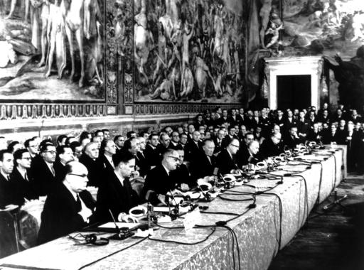 Am 25. März 1957 wurden in Rom die Verträge zur Gründung der Europäischen Wirtschaftsgemeinschaft und Europäischen Atomgemeinschaft von den Regierungschefs Belgiens, Frankreichs, Italiens, Luxemburgs, der Bundesrepublik und der Niederlande unterzeichnet. Nach der Gründung der Europäischen Gemeinschaft für Kohle und Stahl 1951 machten die sechs Gründungsmitglieder damit den nächsten Schritt auf dem Weg zur Europäischen Union.