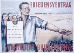 Nach der bedingungslosen Kapitulation am 8. Mai 1945 wurde Deutschland in eine amerikanische, eine britische, eine französische und eine sowjetische Besatzungszone (SBZ) geteilt und vollständig demilitarisiert. Die sich schon bald verhärtenden Fronten zwischen den Westmächten und der UdSSR wirkten sich auch auf Deutschland aus: Während in den drei westlichen Besatzungszonen liberal-demokratische und marktwirtschaftliche Strukturen aufgebaut wurden, errichtete die Sozialistische Einheitspartei Deutschlands in der SBZ eine kommunistische Einparteienherrschaft in Abhängigkeit von Moskau. 1949 wurden die Bundesrepublik Deutschland und die DDR gegründet.